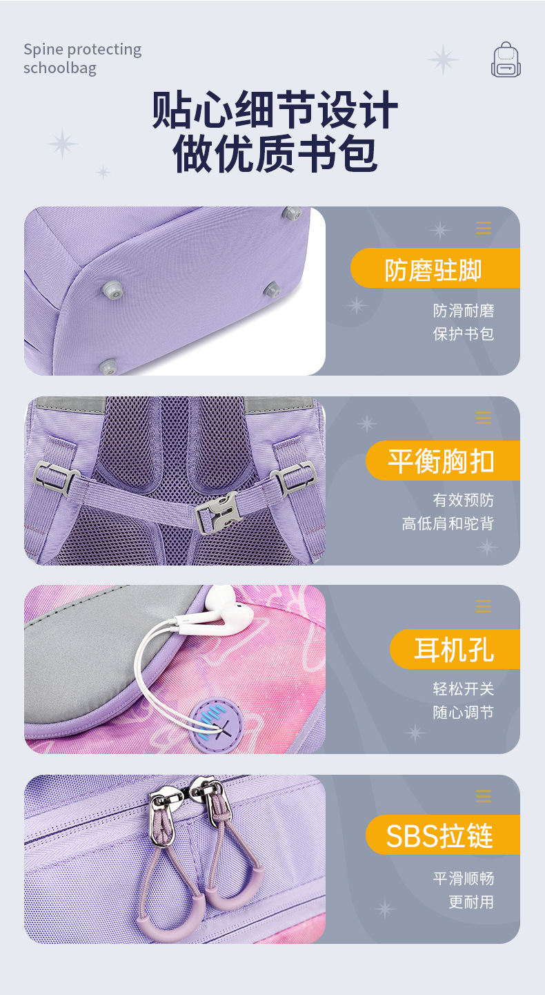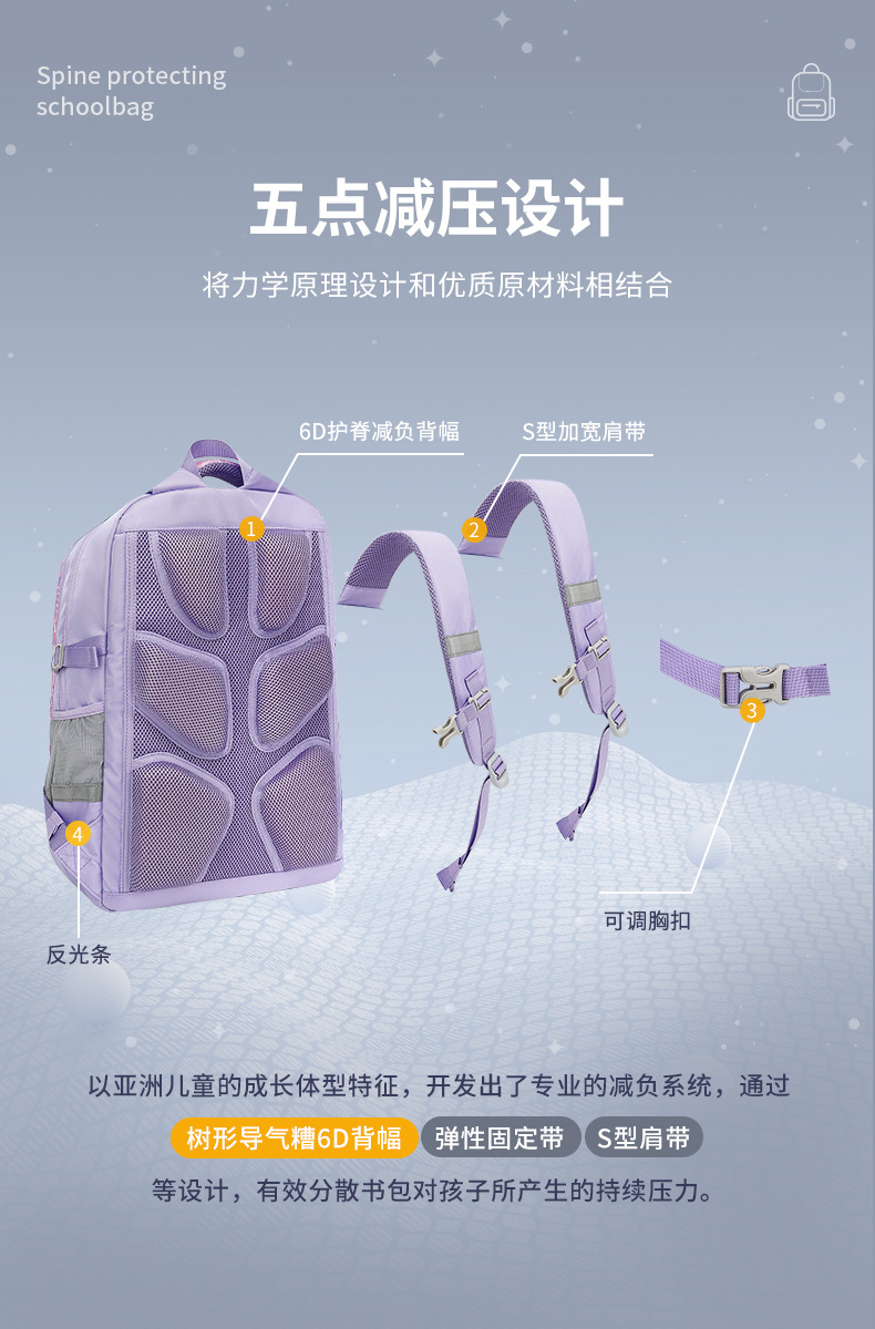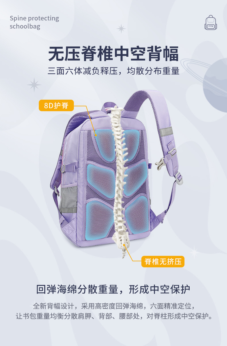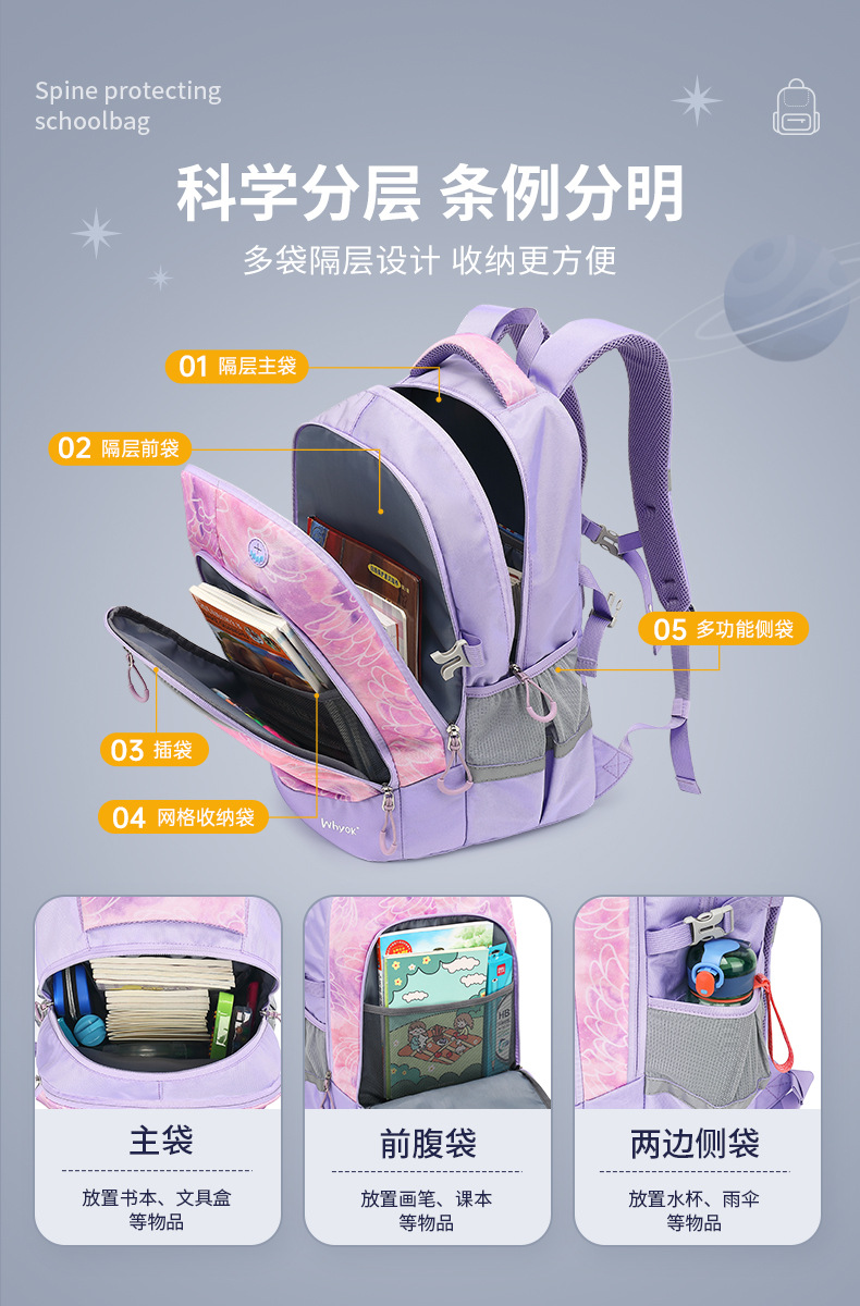 Tas sekolah kapasitas besar, tas sekolah murid SMP Perempuan, ransel pengurang beban tulang belakang perlindungan 4 sampai 9 kelas komputer ultra ringan