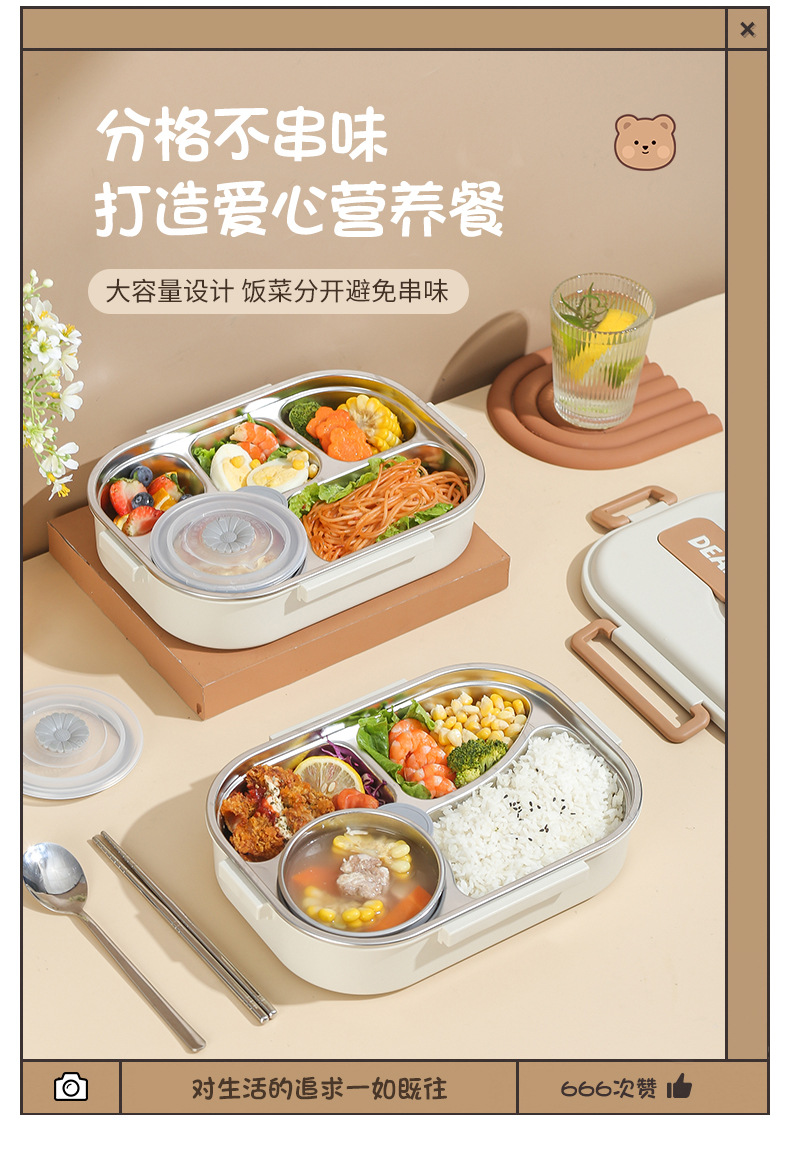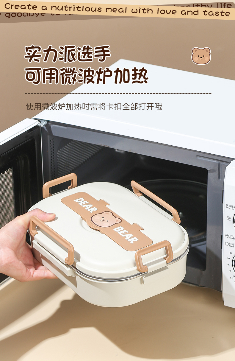 Kotak makan siang terisolasi baja tahan karat oven microwave kotak makan siang pemanas dengan tutup kantor pekerja kotak makan siang pelajar kantin makan siang