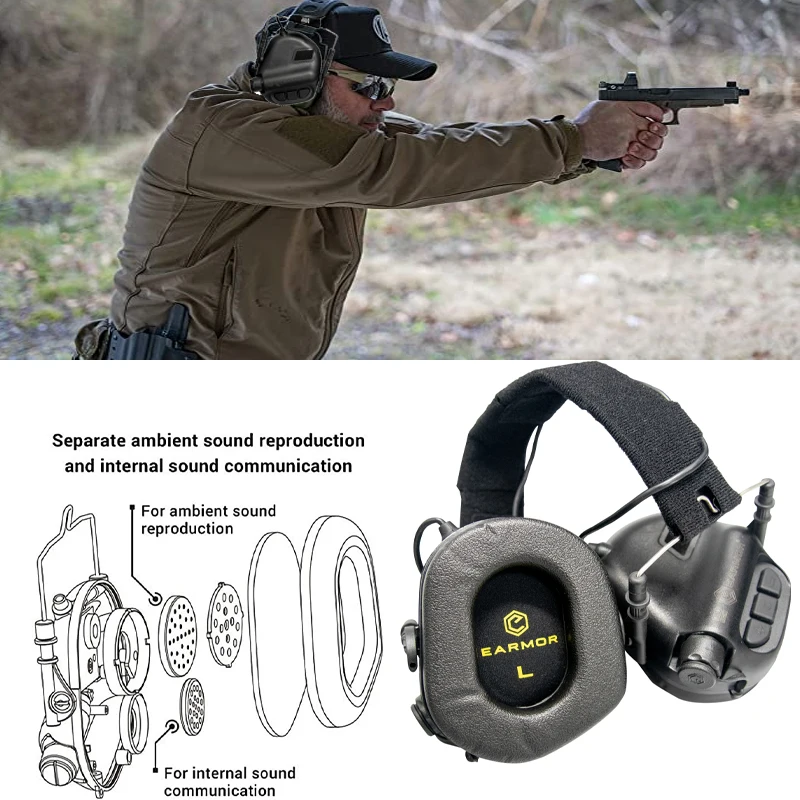 EARMOR headphone pengambilan suara elektronik dan peredam bising asli M31, penutup telinga pelindung komunikasi yang dipasang di kepala, senyap dan kedap suara.