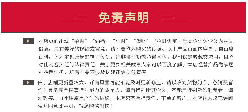 重量:树脂、铜器等依据模具生产的产品可能因内部砂石、石膏等清理情况不同而存在重量差异,页面描述的重量为随机抽样的大概重量。