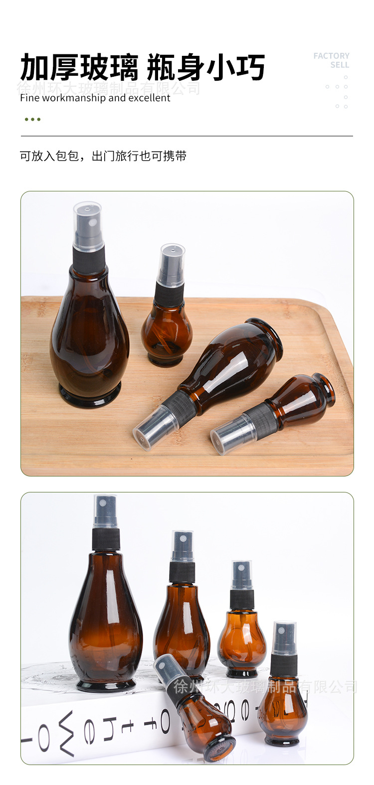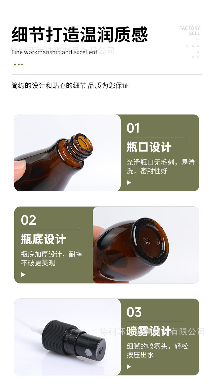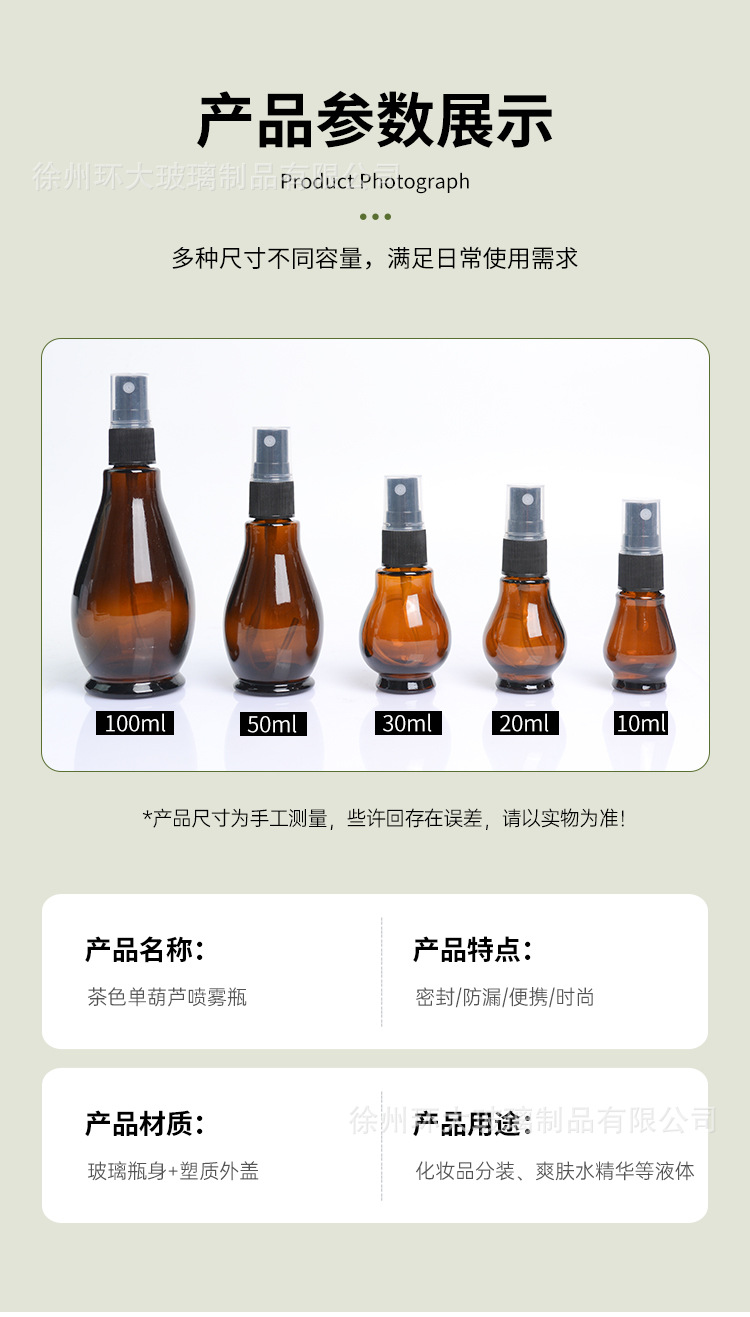 Botol minyak esensial single-gourd anti cahaya berwarna cokelat, botol kaca isi ulang, botol semprot tekan, botol lotion, botol kosong grosir