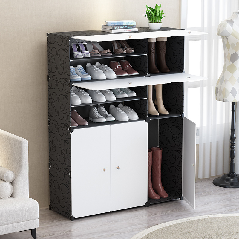 48 Pairs Shoe Storage: The portable shoe cabinet features 12 cube cabinets in total for you to store things such as shoes, clothes, bags, toys, and hats. There are 5 hooks at one side to hang more things.