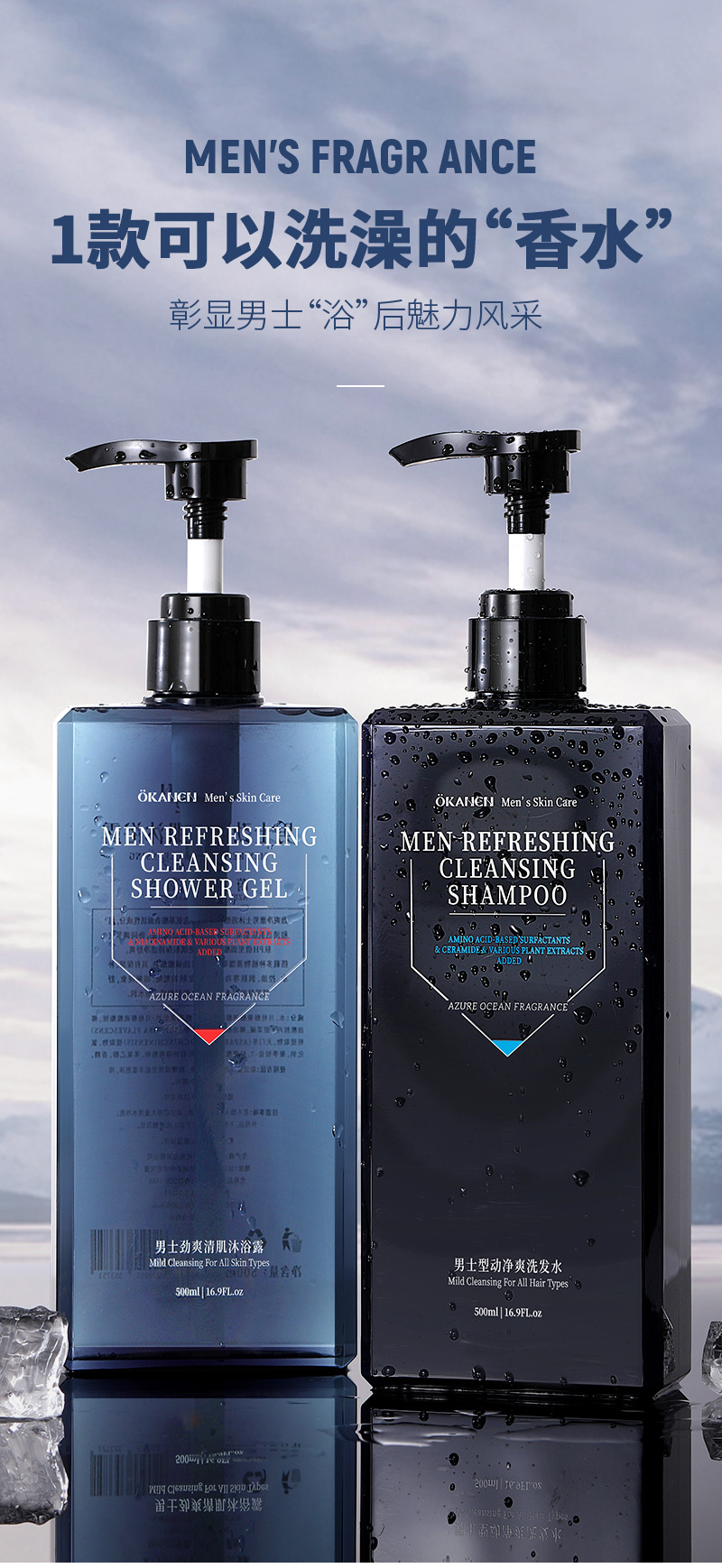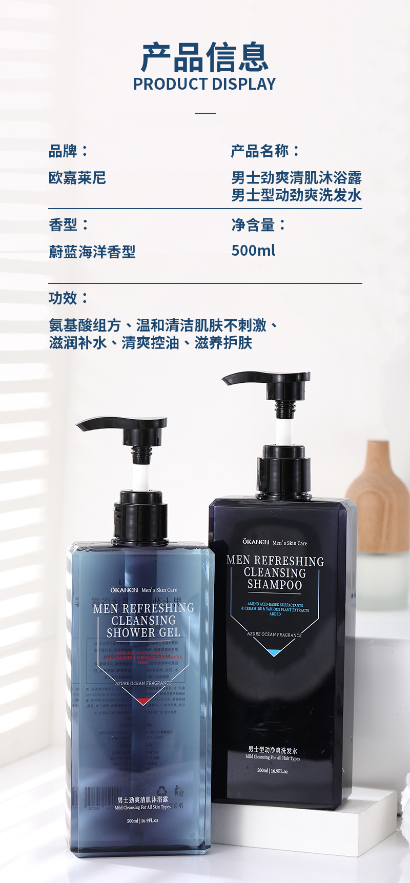 Ojialini sampo pria dan gel mandi khusus menyegarkan membersihkan melembapkan di pabrik stok grosir pengiriman satu bagian