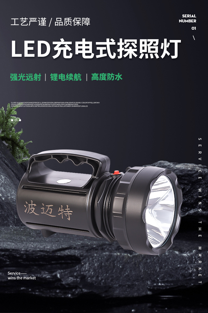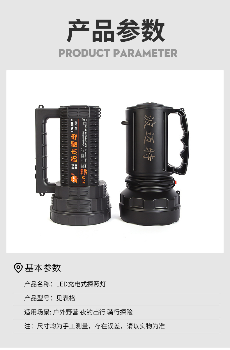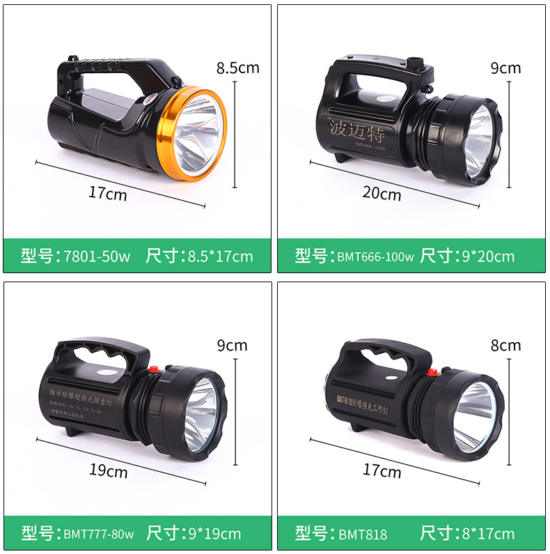 BMT波迈特LED充电式探照多规格照明手电筒户外露营灯手提式强光照