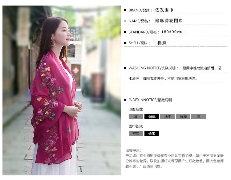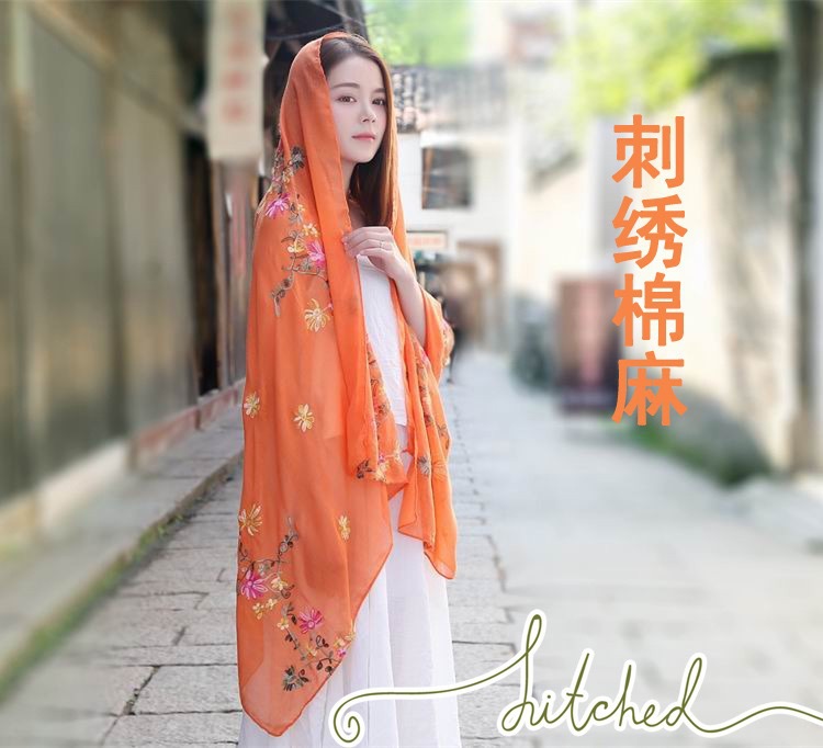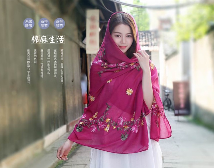 Syal katun dan linen bordir baru syal gaya etnik tabir surya perjalanan wanita handuk pantai Tepi pantai selendang bordir grosir