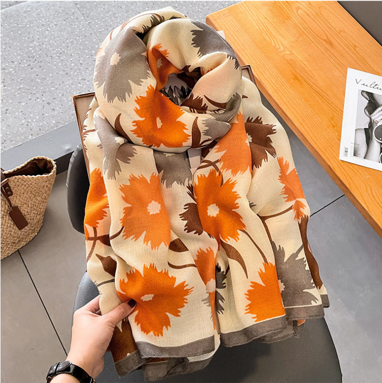 Syal katun dan linen wanita, selendang panjang Semua cocok pakaian luar tipis musim semi dan musim panas syal wanita musim gugur dan musim dingin gaya Korea bunga kecil