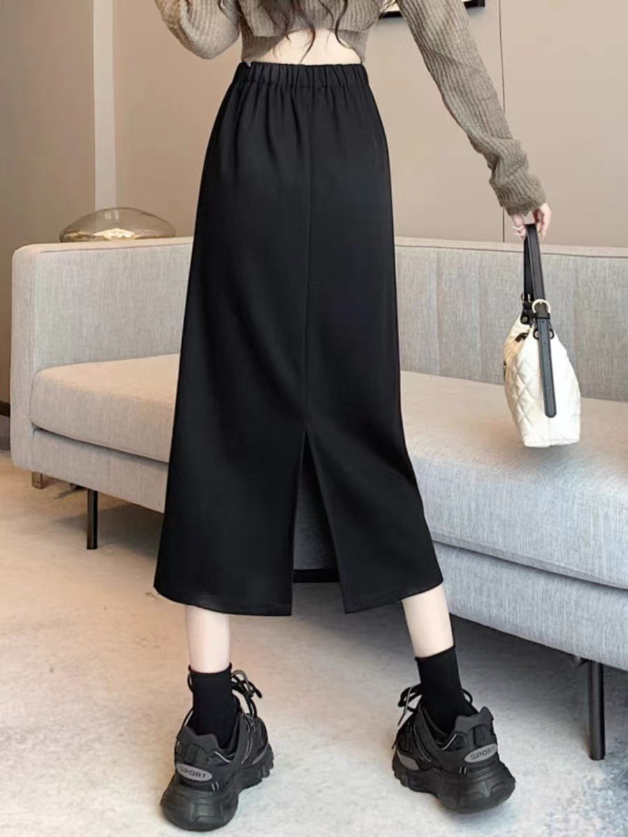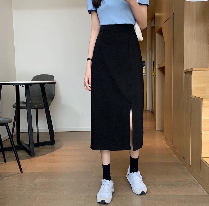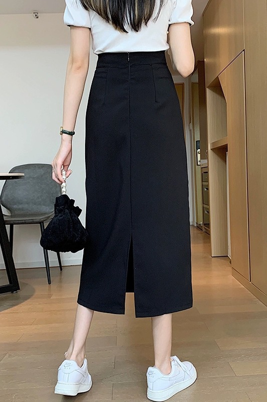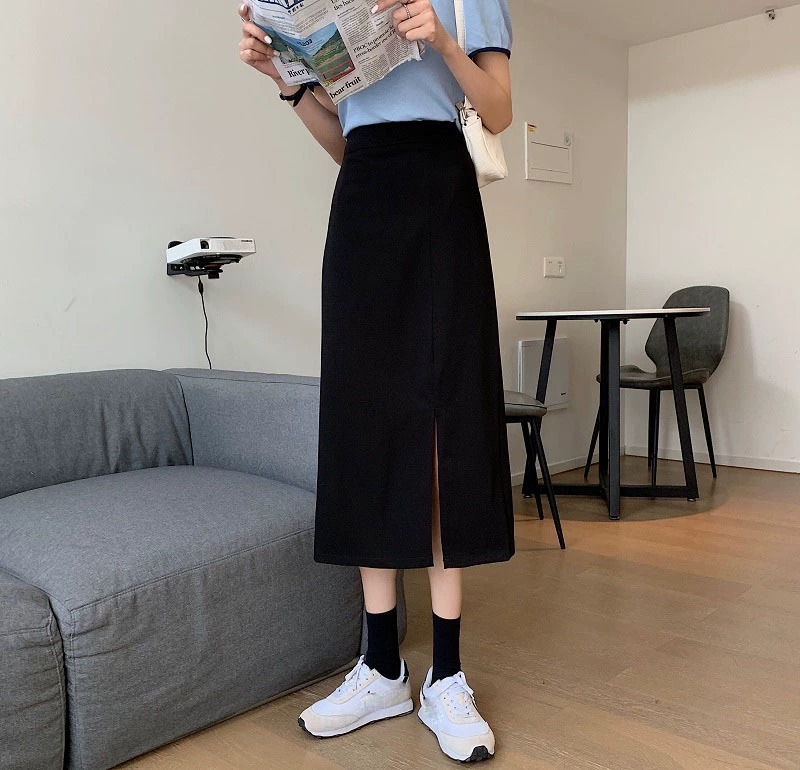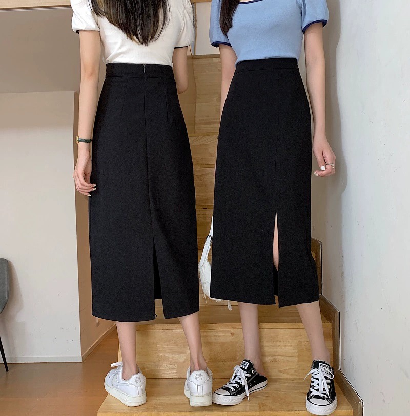 梨形身材a字半身裙女夏季薄款大码胖mm显瘦遮胯中长款开叉西装裙