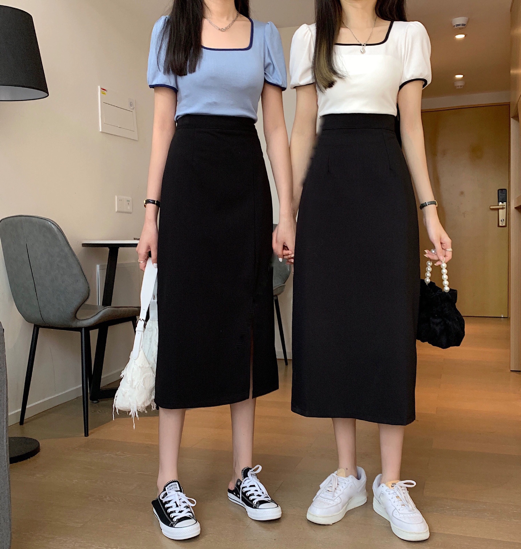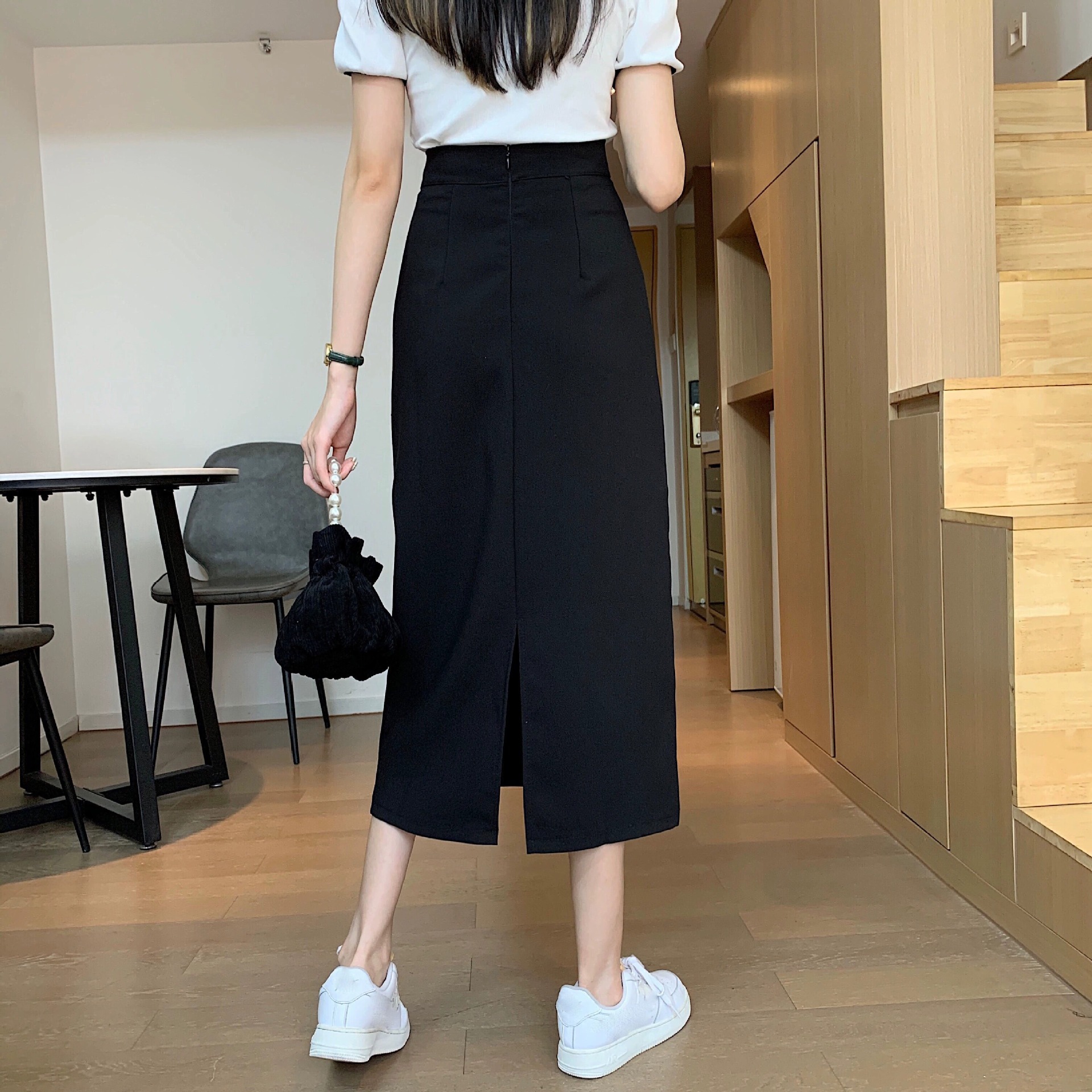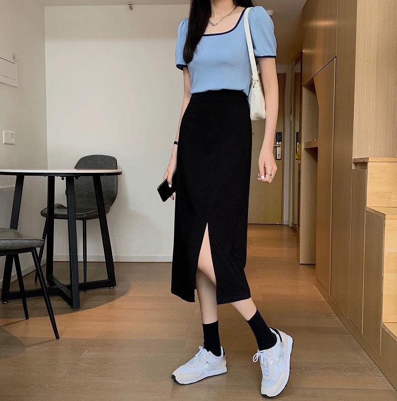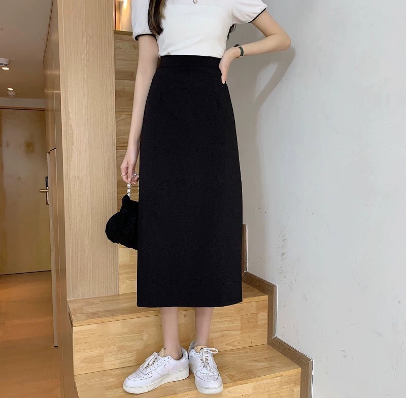 梨形身材a字半身裙女夏季薄款大码胖mm显瘦遮胯中长款开叉西装裙