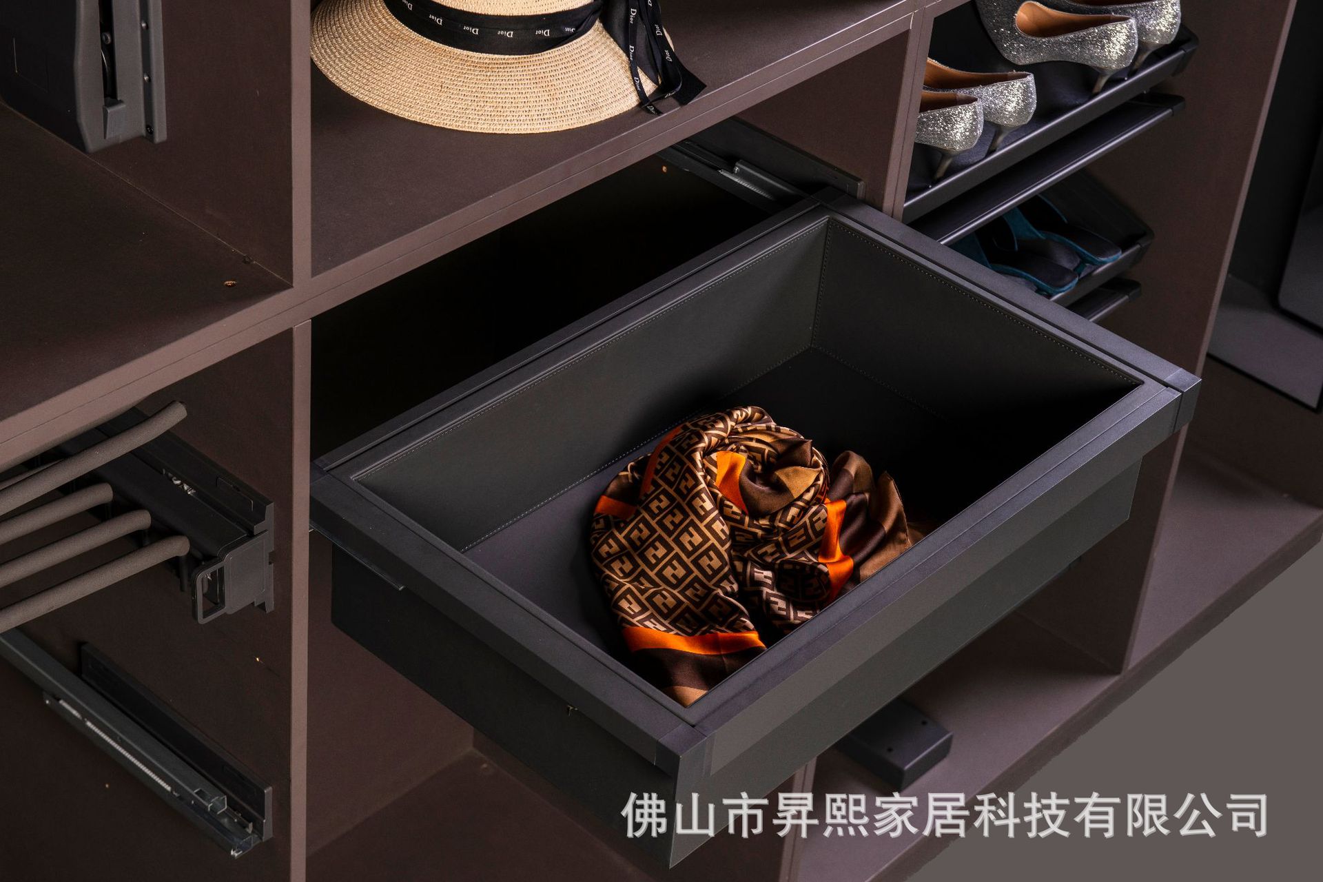 Rak celana model laci tarik lemari pakaian, kotak perhiasan kulit, kotak perhiasan dengan peredam, aksesoris perangkat keras penyimpanan, peredam senyap