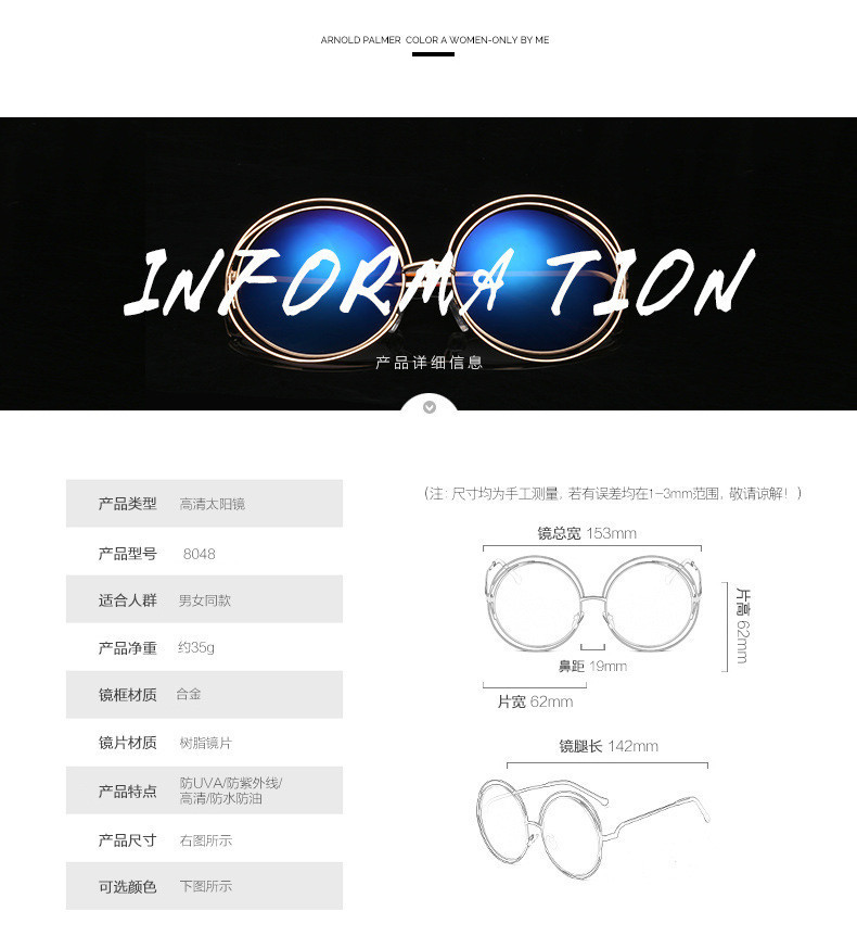 Kacamata hitam bingkai besar selebriti Internet rubah liar baru 8048 kacamata hitam wanita bingkai bulat kacamata film asli kacamata polos