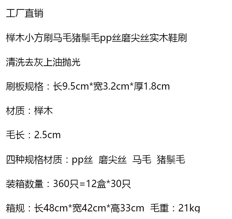 榉木小方刷马毛猪鬃毛pp丝磨尖丝实木鞋刷清洗去灰上油抛光去污刷
