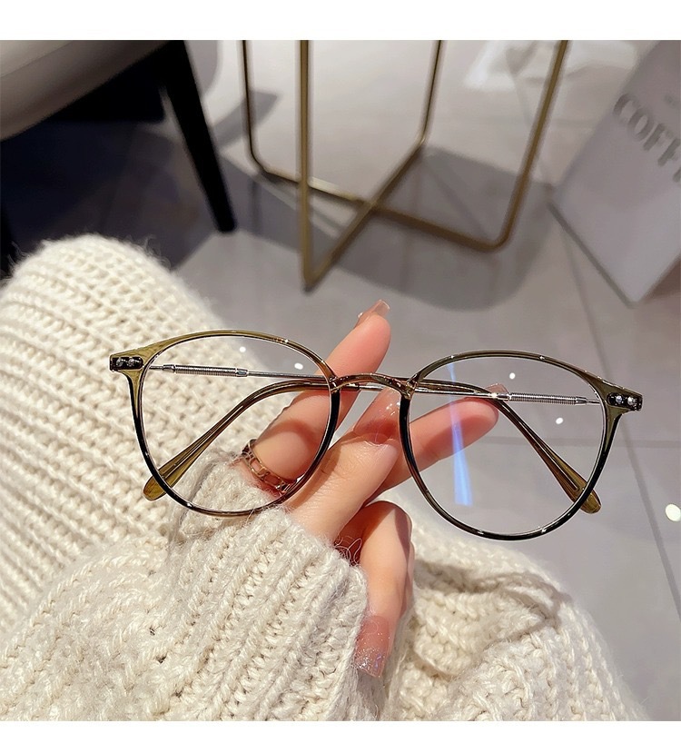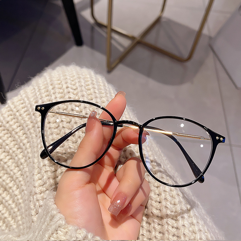 Kacamata hitam anti-sinar biru pria wanita, bingkai hitam miopia bingkai bulat pelangsing polos grosir