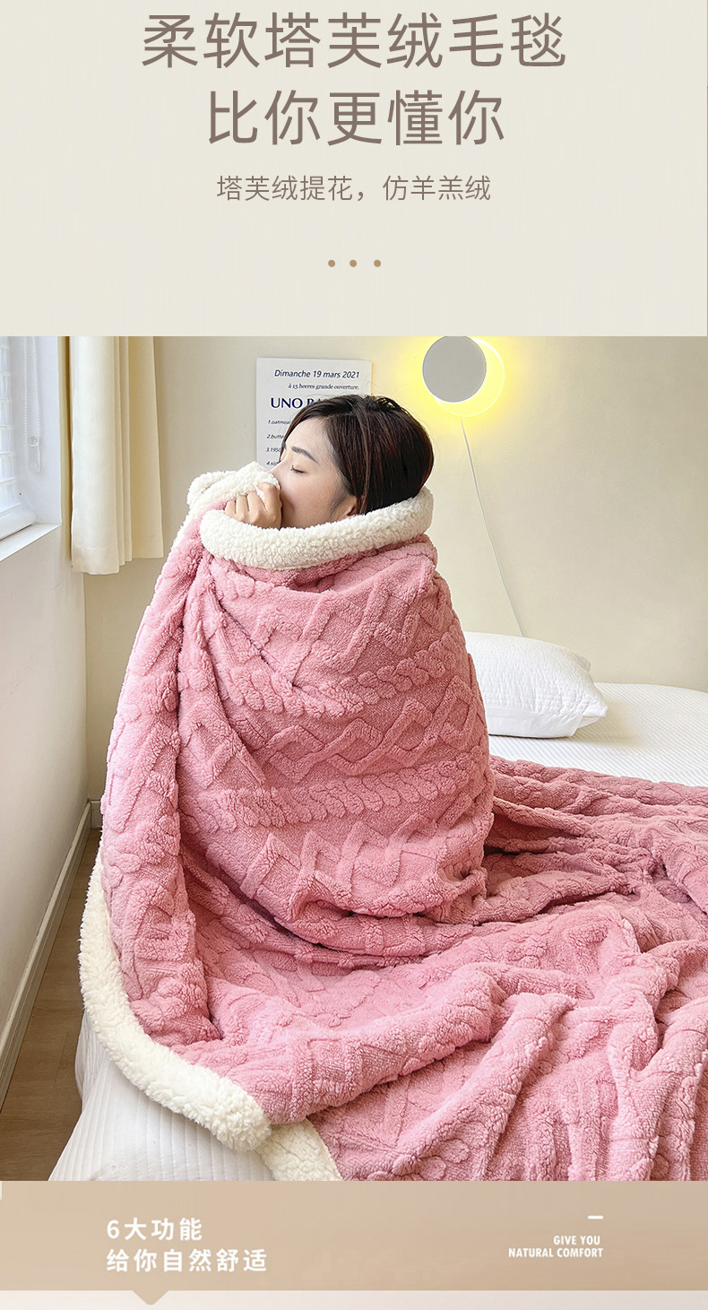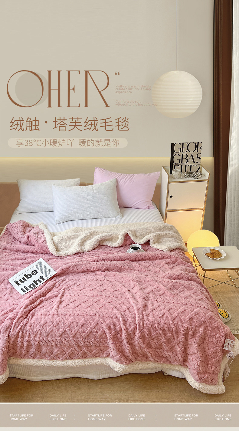 Selimut menara hibiscus lapisan ganda tebal warna solid jacquard menara hibiscus AB versi musim gugur dan musim dingin selimut tebal lapisan ganda