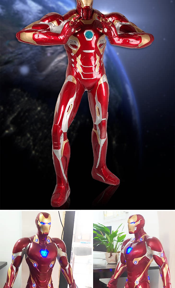 钢铁侠漫威英雄复仇者联盟蜘蛛侠玻璃钢雕塑电影院发光摆件