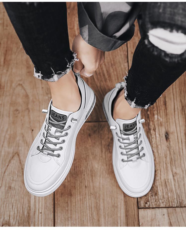 Sepatu Pria Musim Semi dan Musim Gugur 2025 Sepatu Kulit Kasual Baru Sepatu Flat Putih Pria Remaja Paling Mudah untuk Pertandingan Sepatu Olahraga Musim Panas Putih