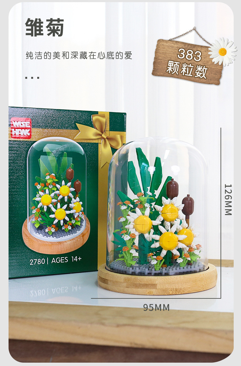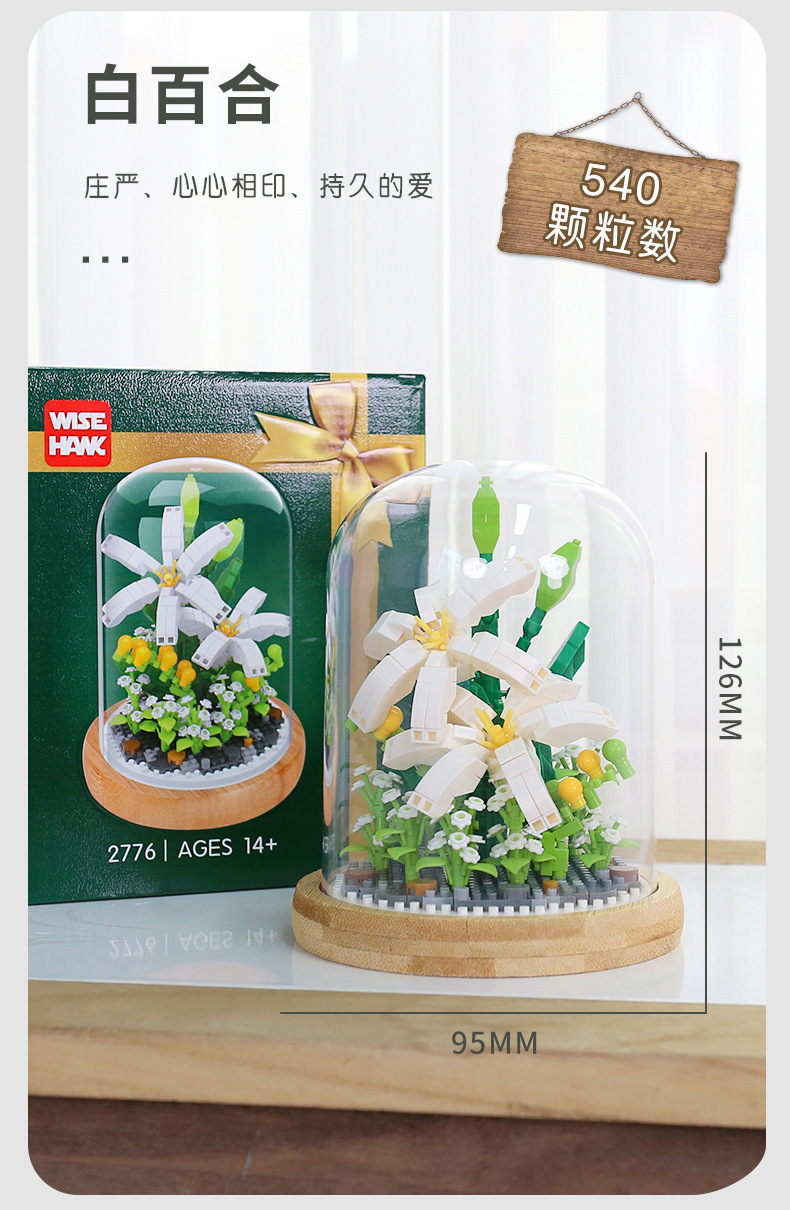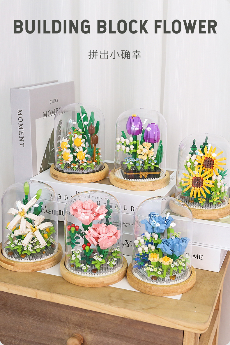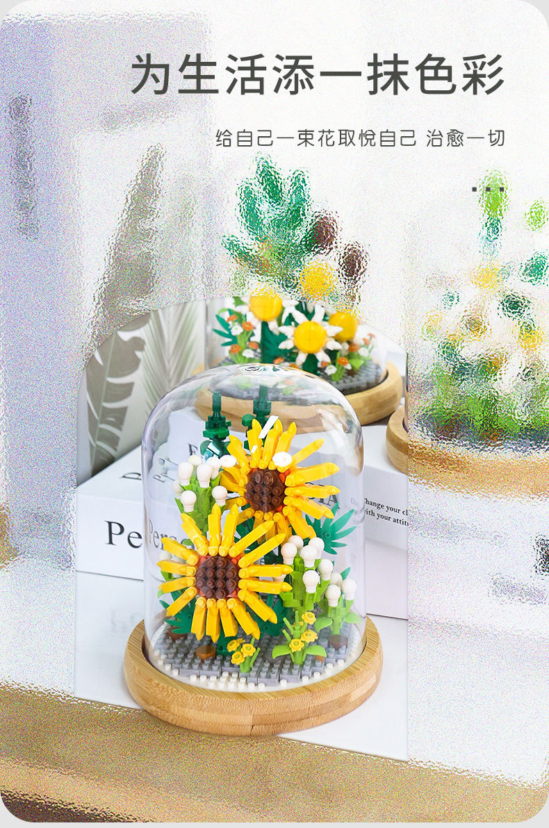 Cocok dengan Lego blok bangunan bunga bunga matahari buket sukulen pot bangunan blok buket bunga mawar anak perempuan mainan anak-anak