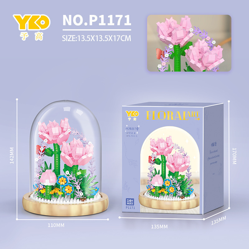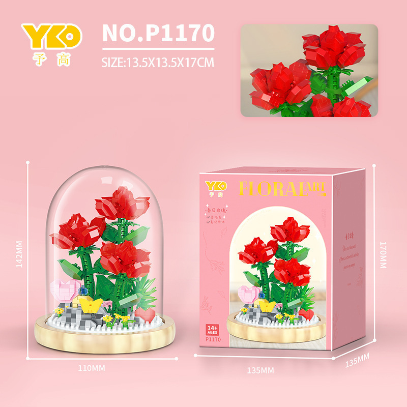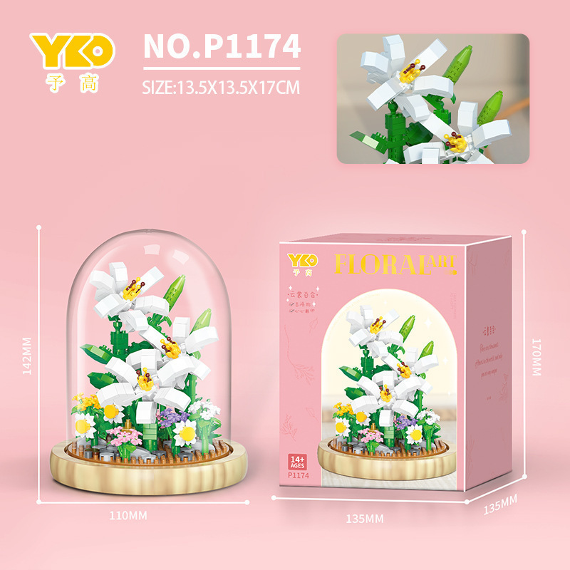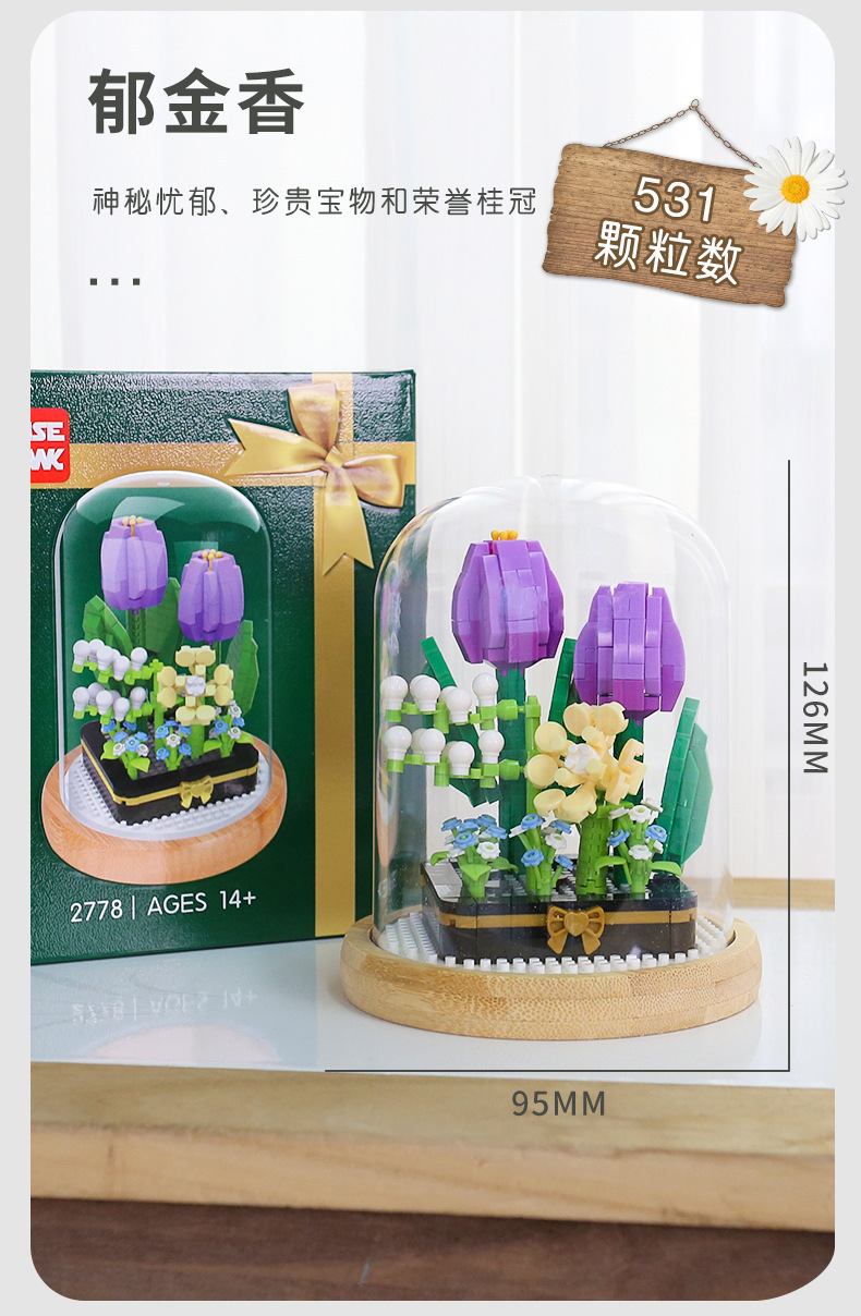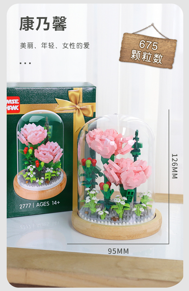 Cocok dengan Lego blok bangunan bunga bunga matahari buket sukulen pot bangunan blok buket bunga mawar anak perempuan mainan anak-anak