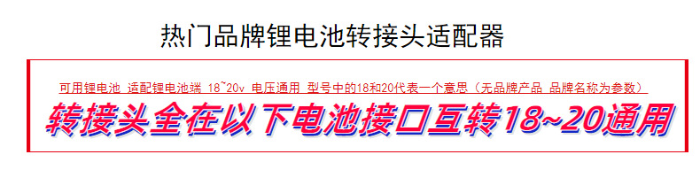 1, 本产品适用于牧田米沃奇得伟博世百德卜派史丹利7款平推锂电池(14.4-20v).