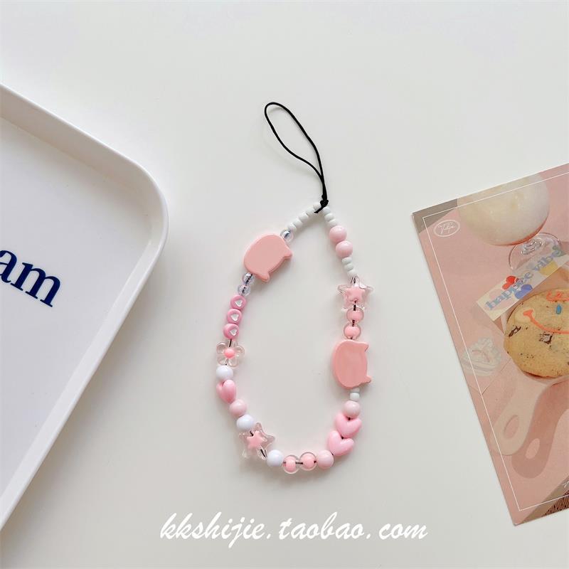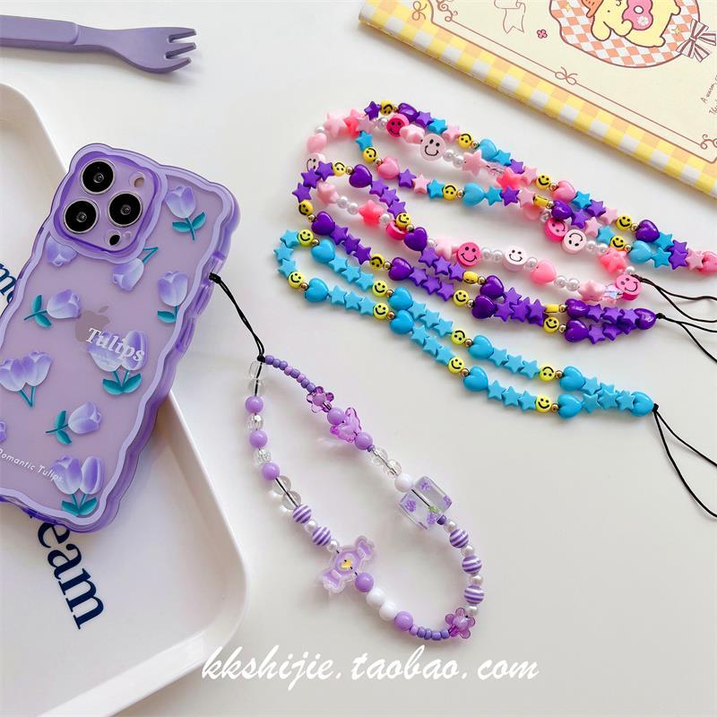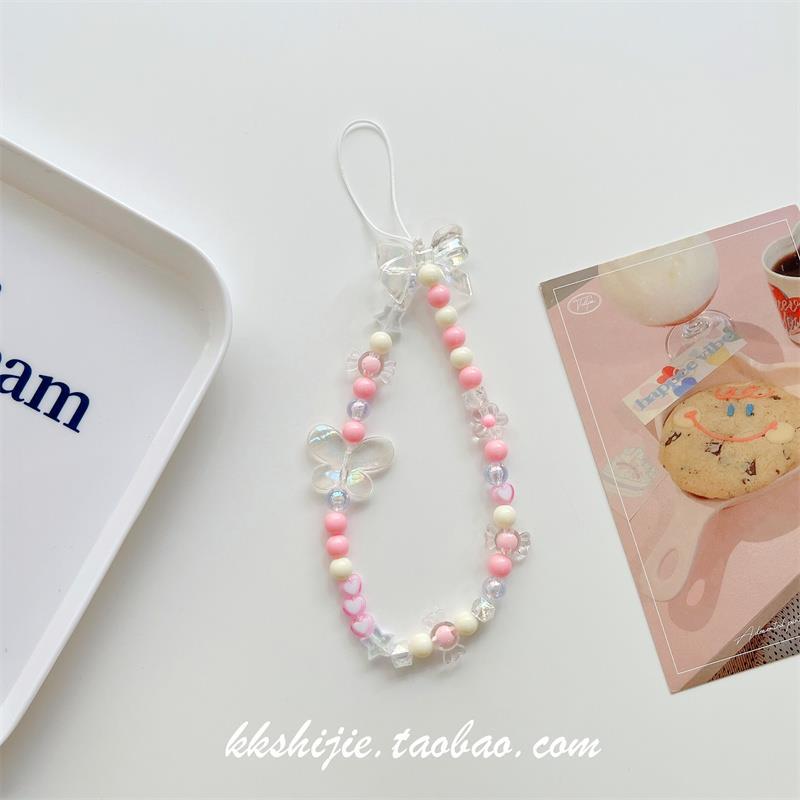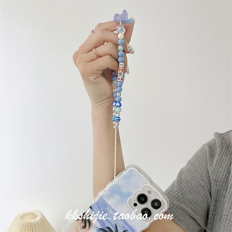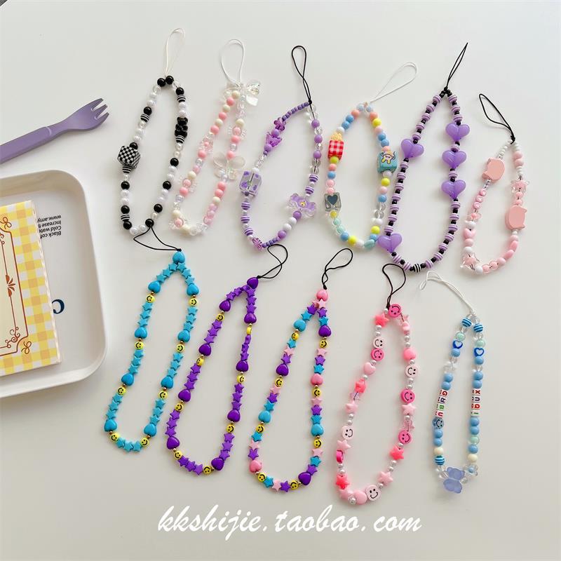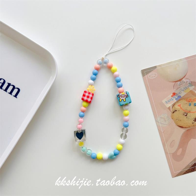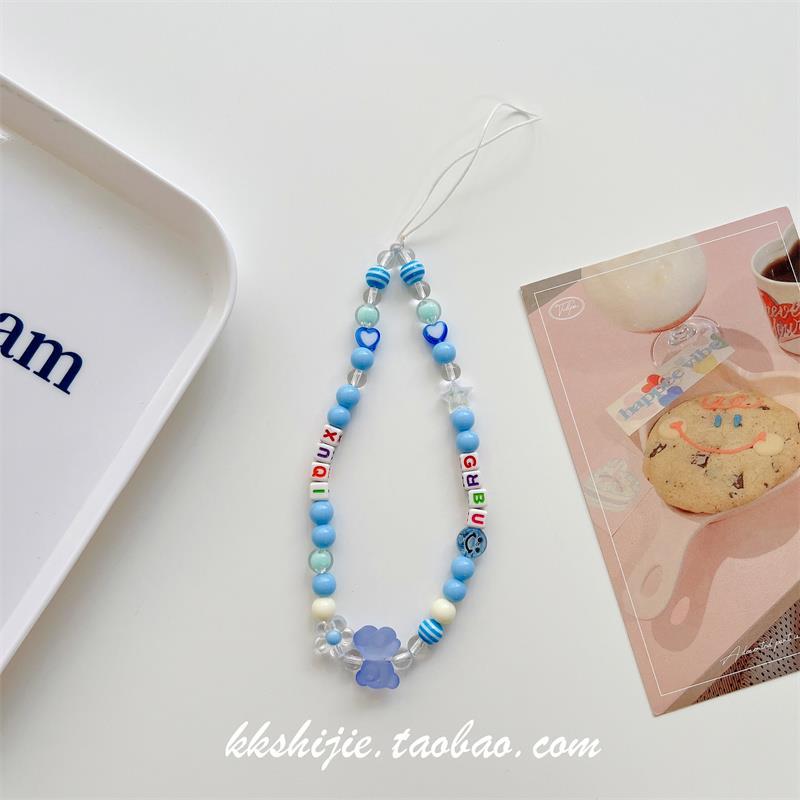 Gelang wanita kartun huruf buatan tangan diy gelang universal semua casing ponsel tali pergelangan tangan manik-manik antihilang antijatuh