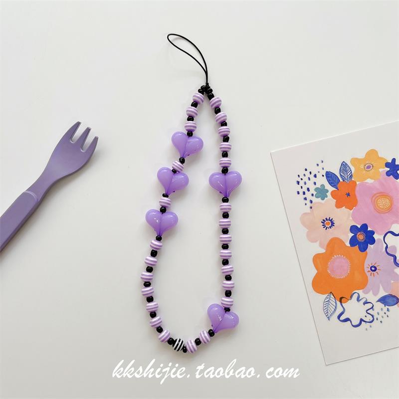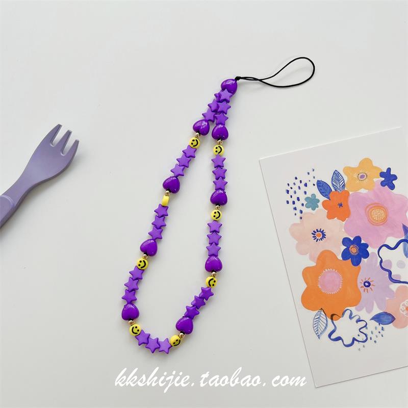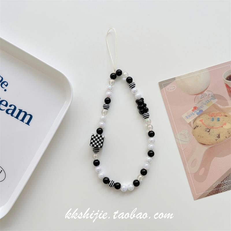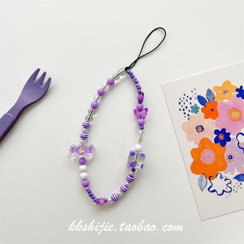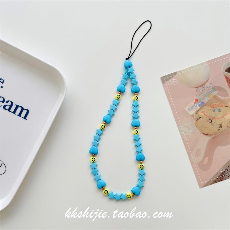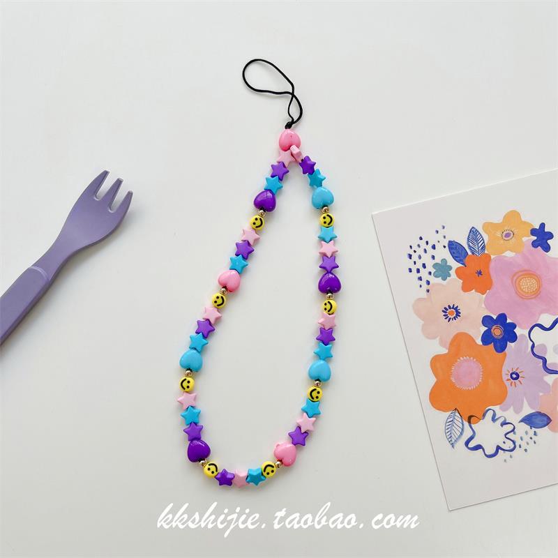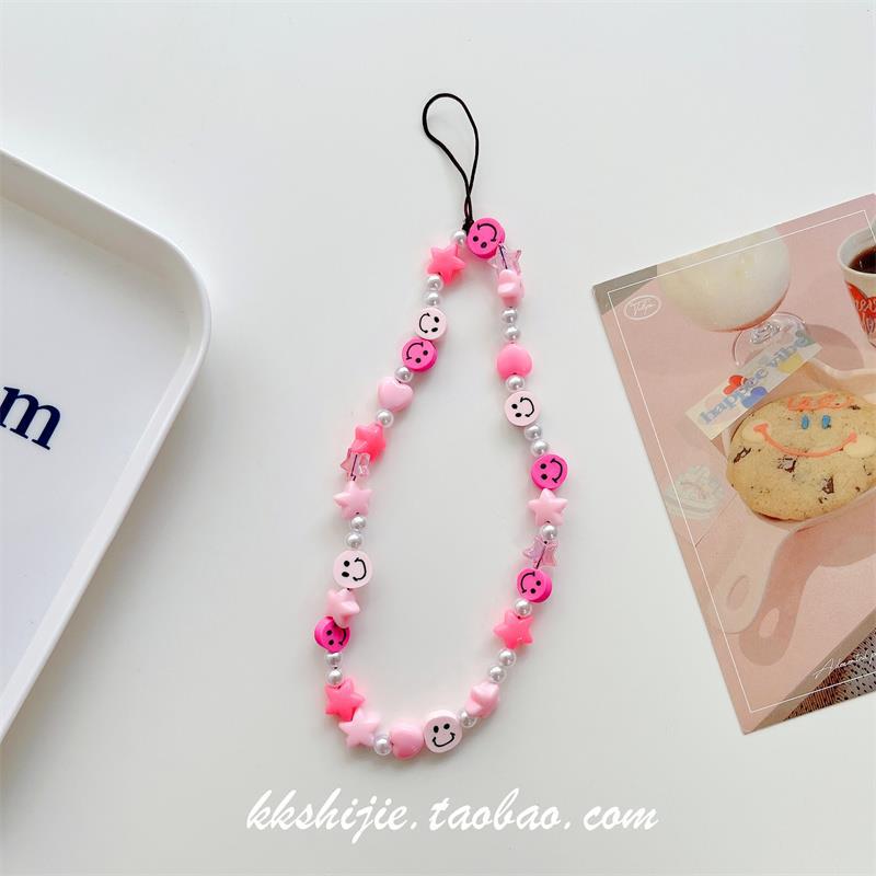 Gelang wanita kartun huruf buatan tangan diy gelang universal semua casing ponsel tali pergelangan tangan manik-manik antihilang antijatuh