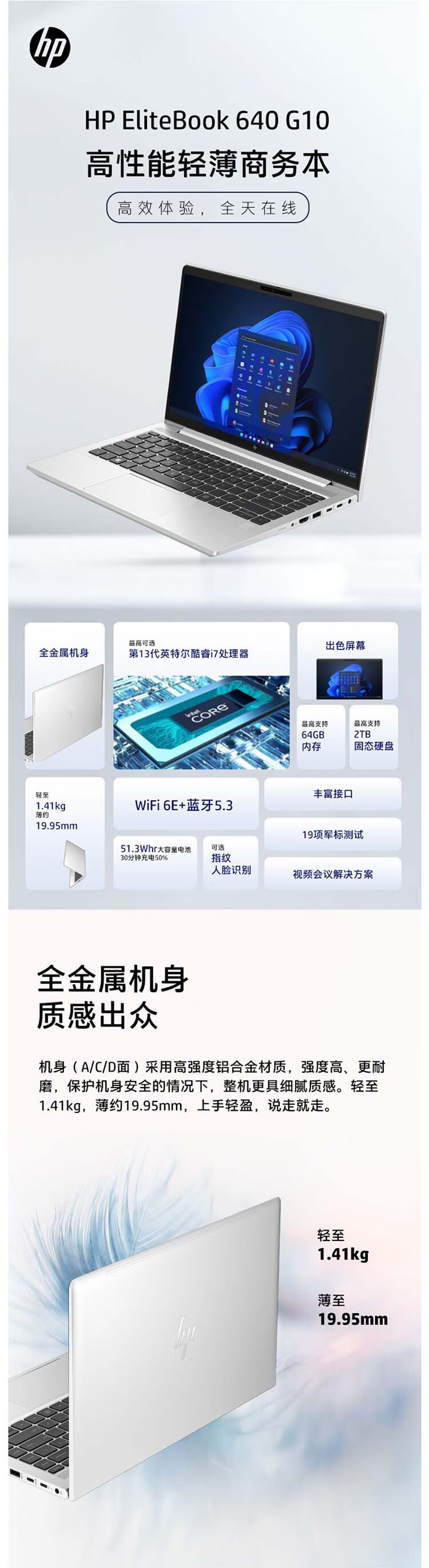 HP notebook Elitebook 640G10 14 inci, komputer laptop kantor ringan komersial kelas atas