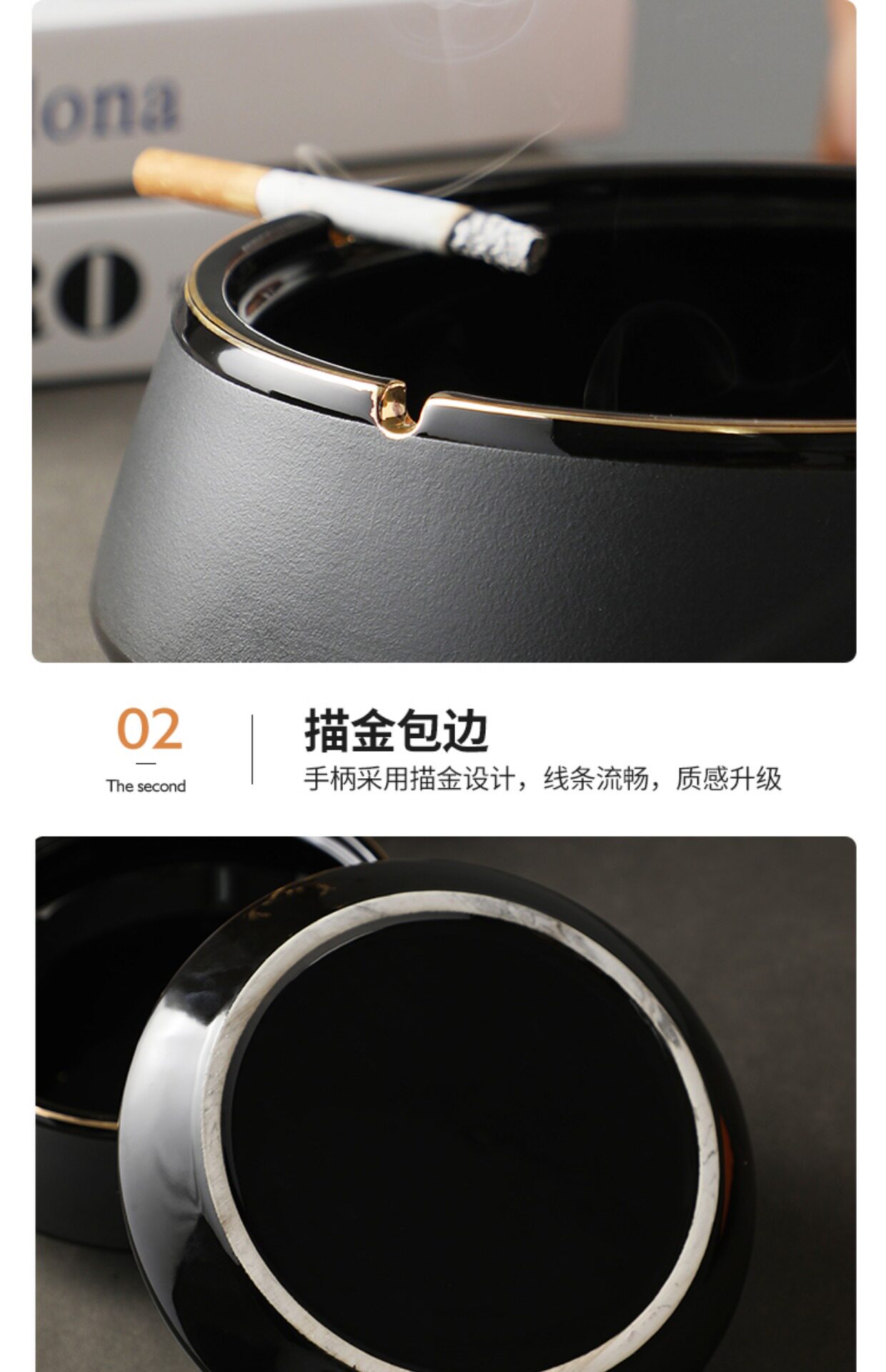 烟灰缸感大理石个性潮流家用办公室客厅陶瓷烟缸防飞带盖麋鹿客厅