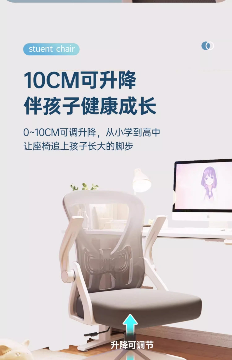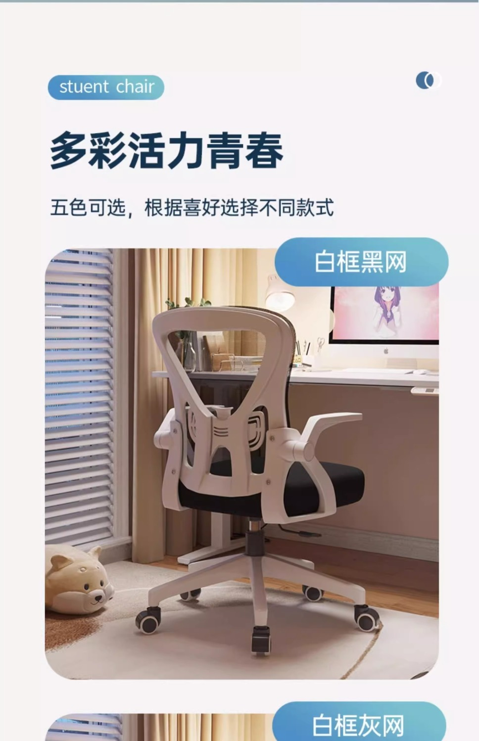 Kursi ergonomis kursi komputer kamar tidur pelajar, sandaran punggung olahraga rumah kantor duduk panjang nyaman