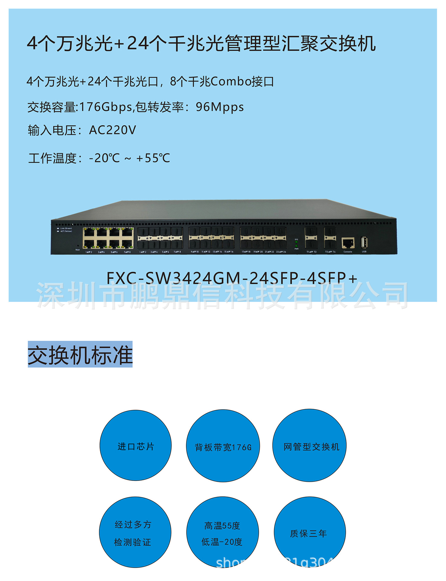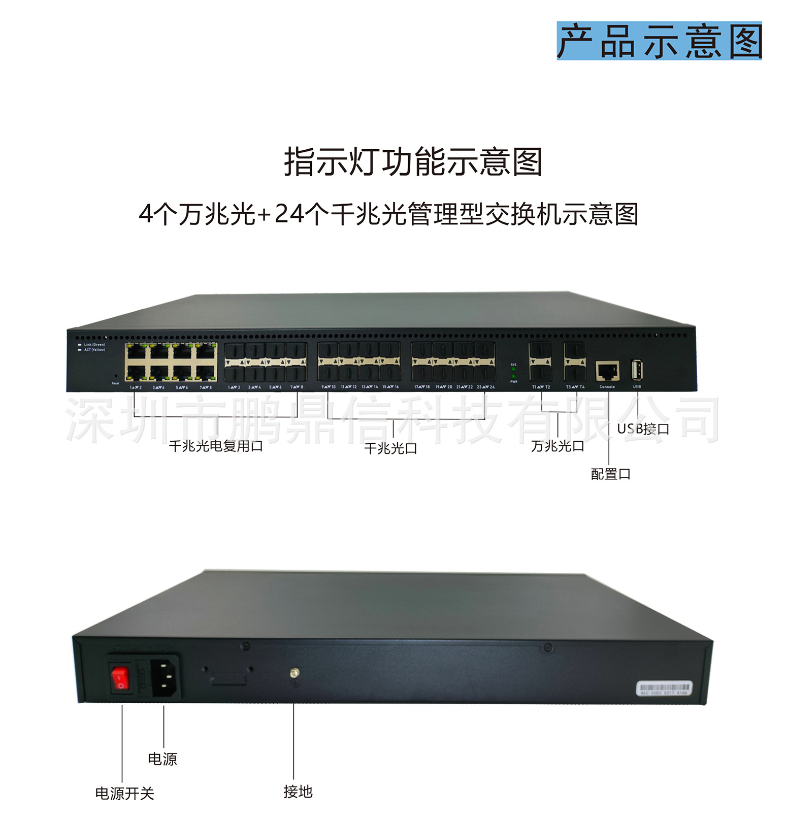 28-port Gigabit serat optik konvergensi switch repeater 4 10 Gigabit optik + 24 Gigabit optik all-optical switch