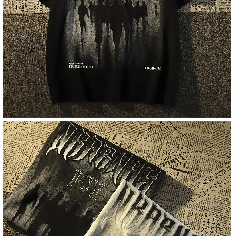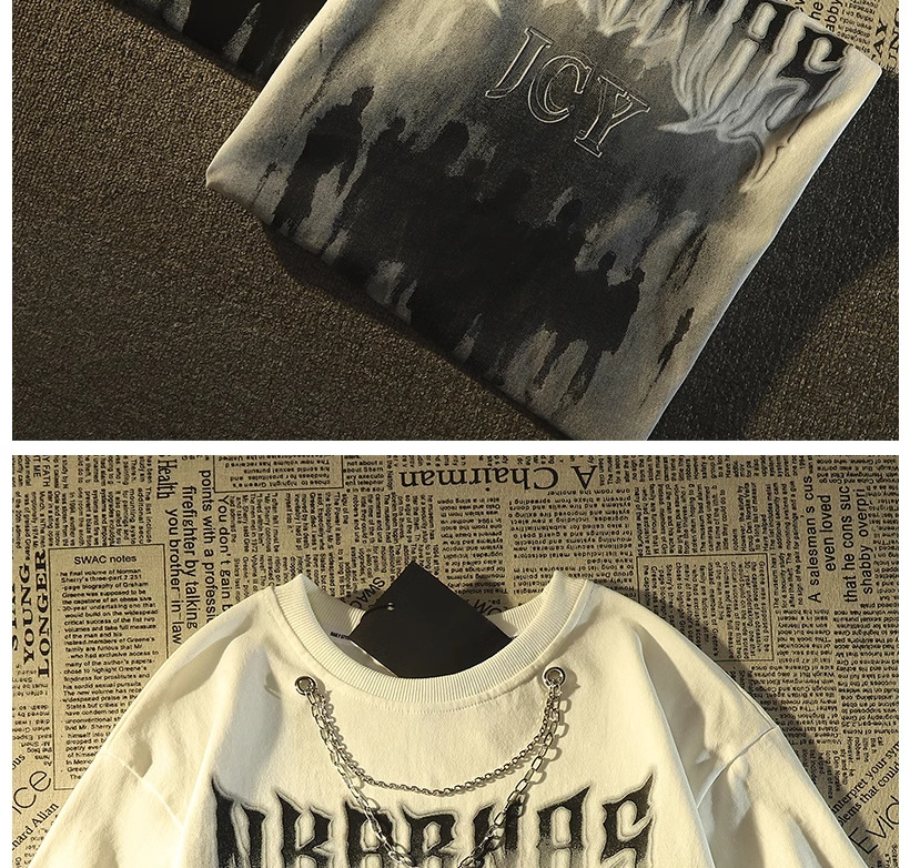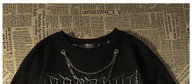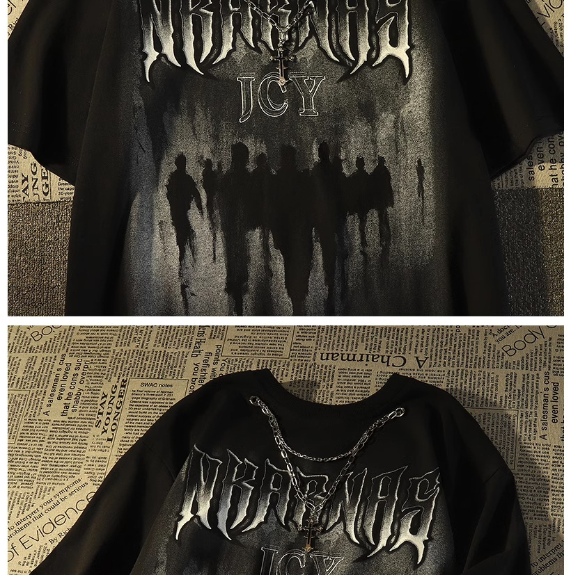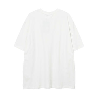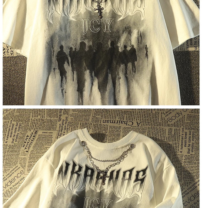Kaos lengan pendek merek trendi gaya Amerika dengan kalung untuk pria, atasan pasangan hip-hop jalanan retro longgar yang trendi