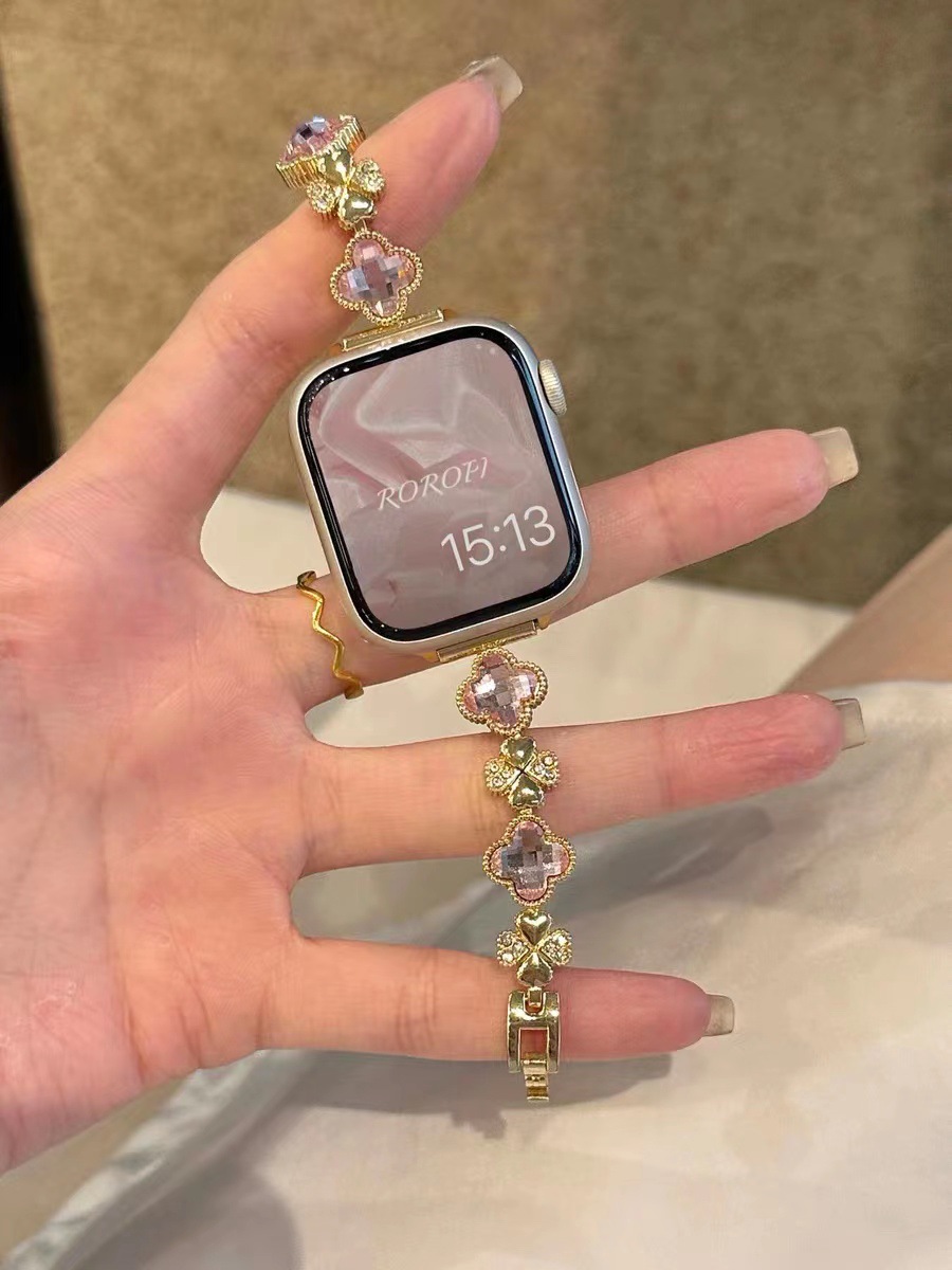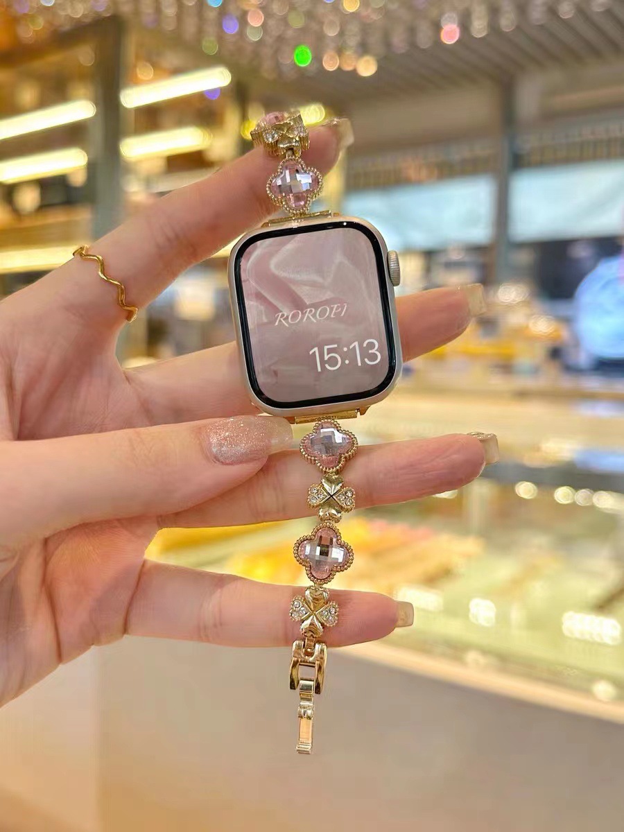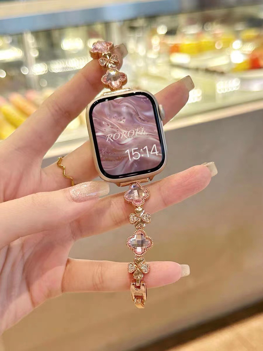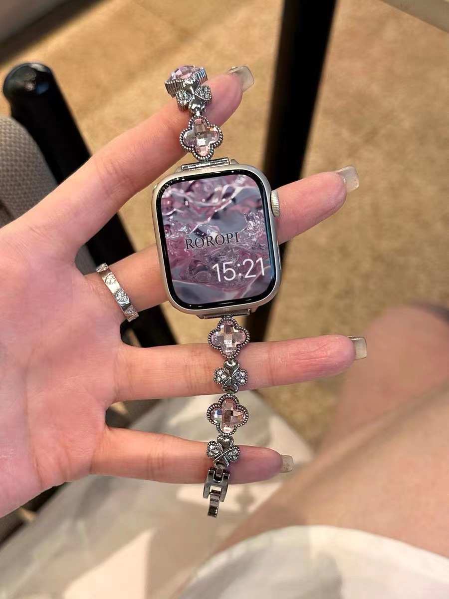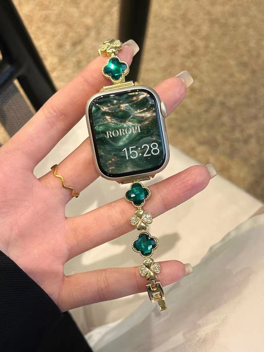 Cocok untuk jam tangan Apple Watch S10 tali logam semanggi empat daun iwatchs9876 generasi SE modis