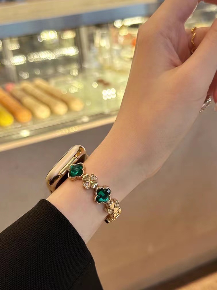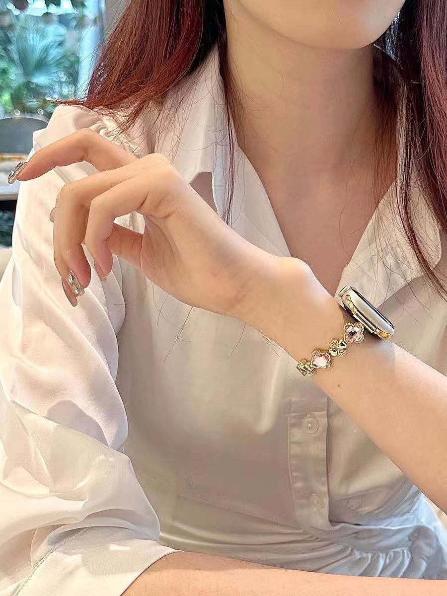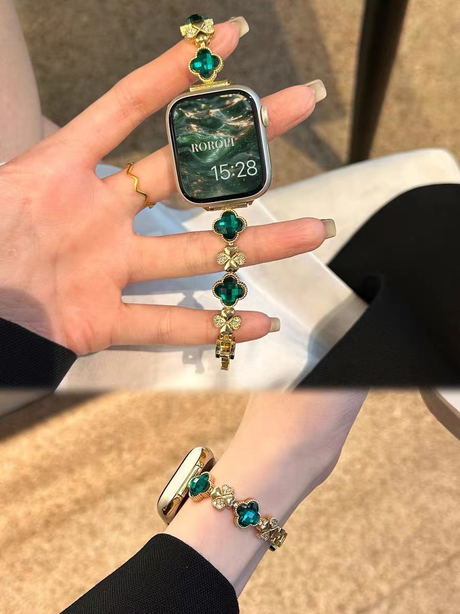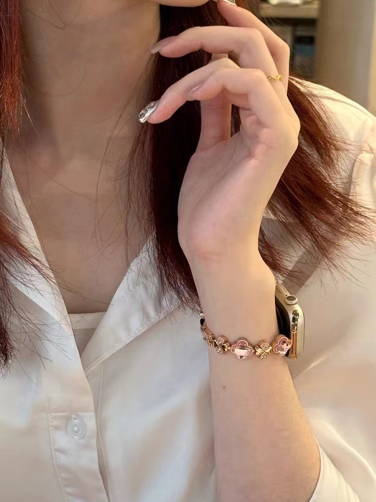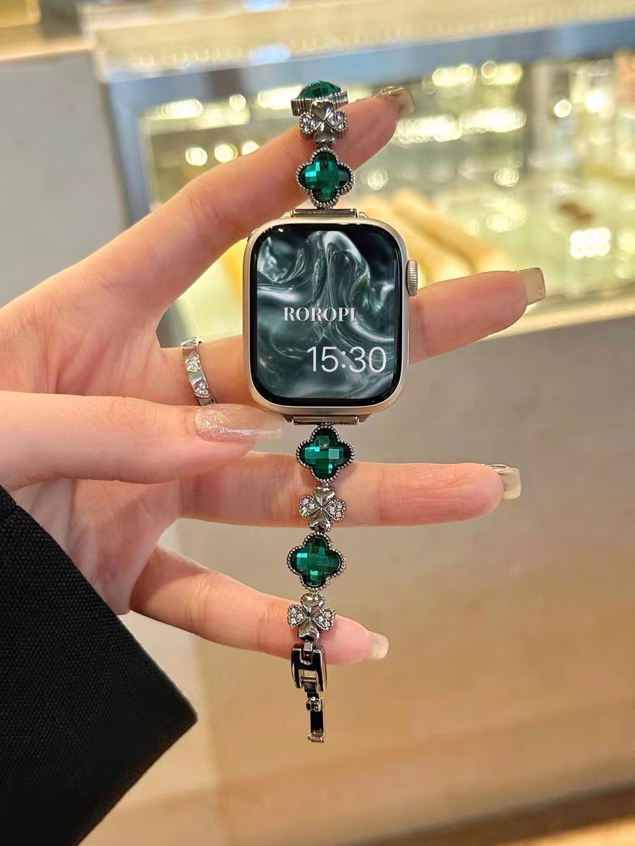 Cocok untuk jam tangan Apple Watch S10 tali logam semanggi empat daun iwatchs9876 generasi SE modis