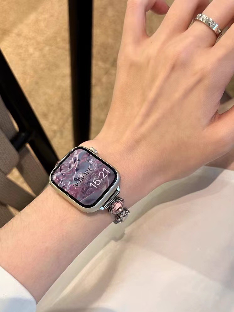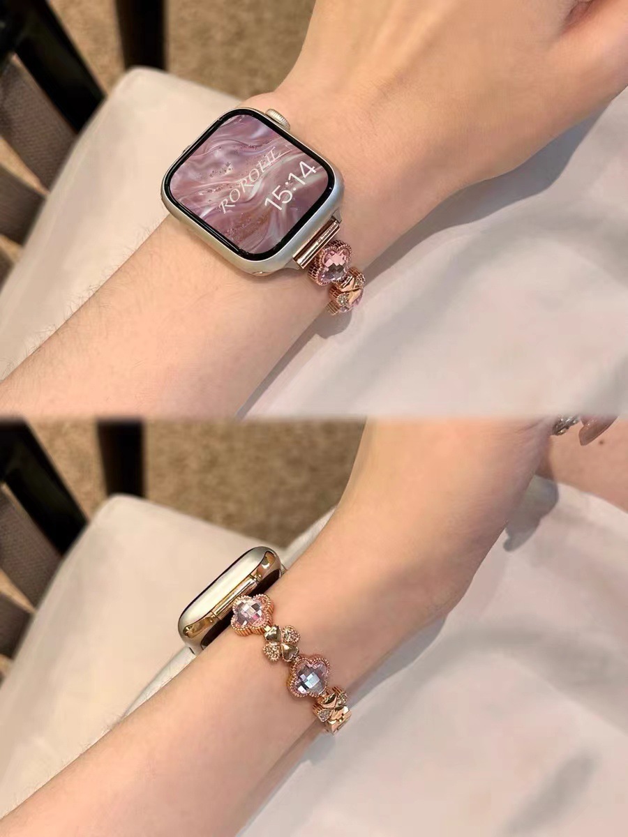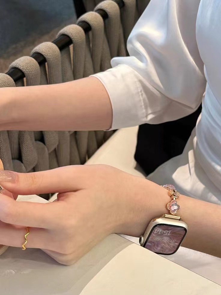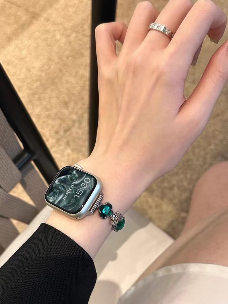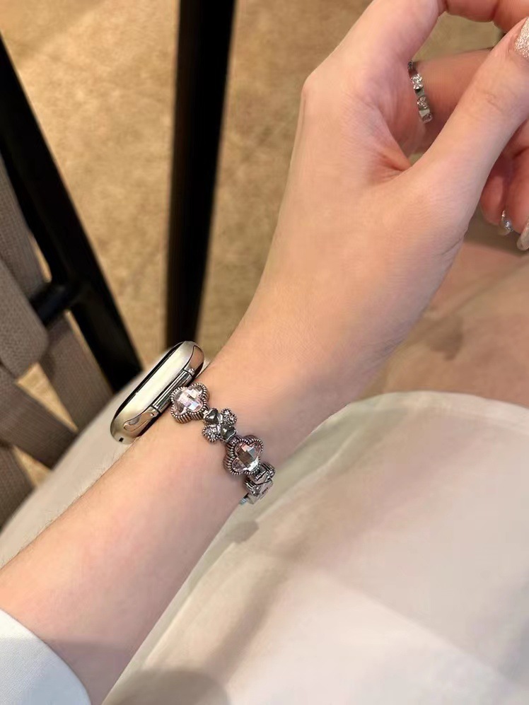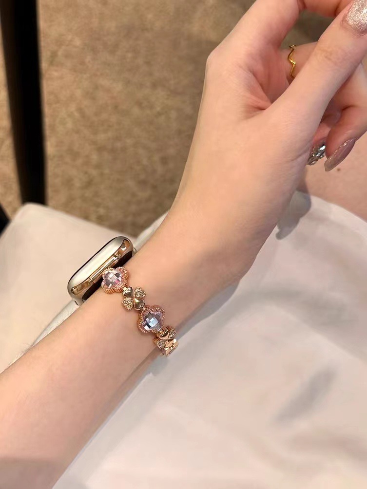 Cocok untuk jam tangan Apple Watch S10 tali logam semanggi empat daun iwatchs9876 generasi SE modis