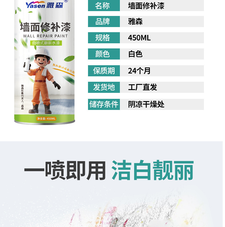Yasen krim reparasi cat dinding, perlindungan lingkungan cat berbasis air renovasi grafiti cat perbaikan noda semprotan sendiri cat lateks