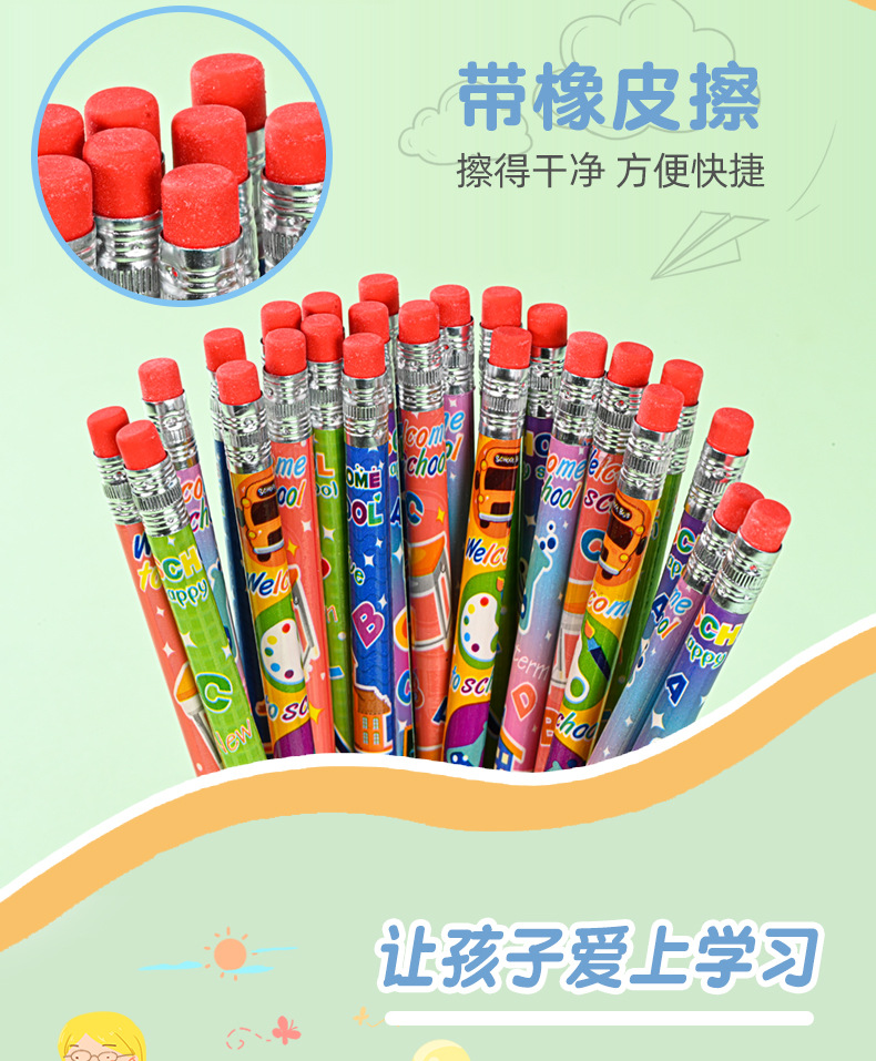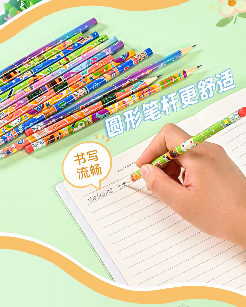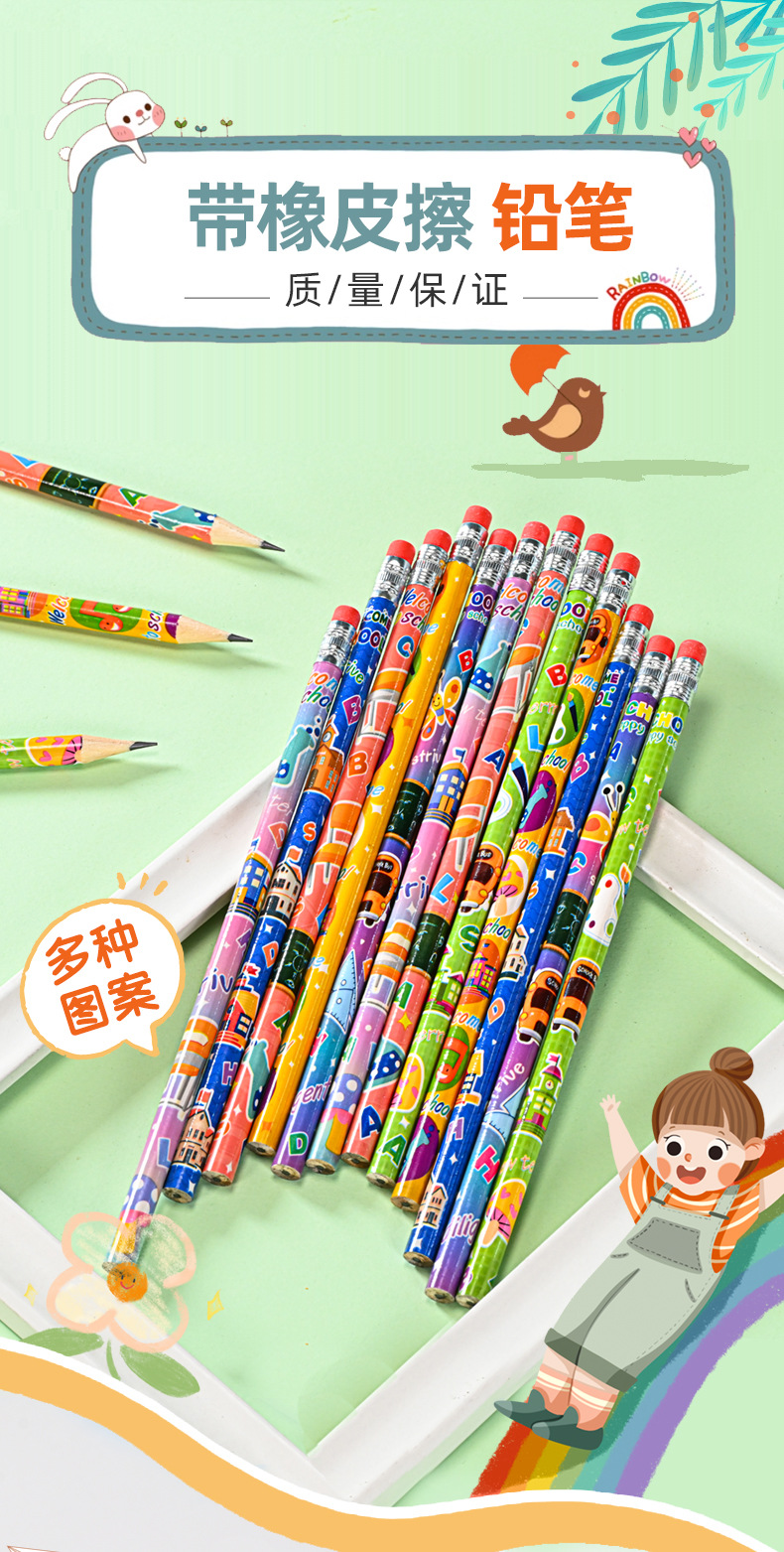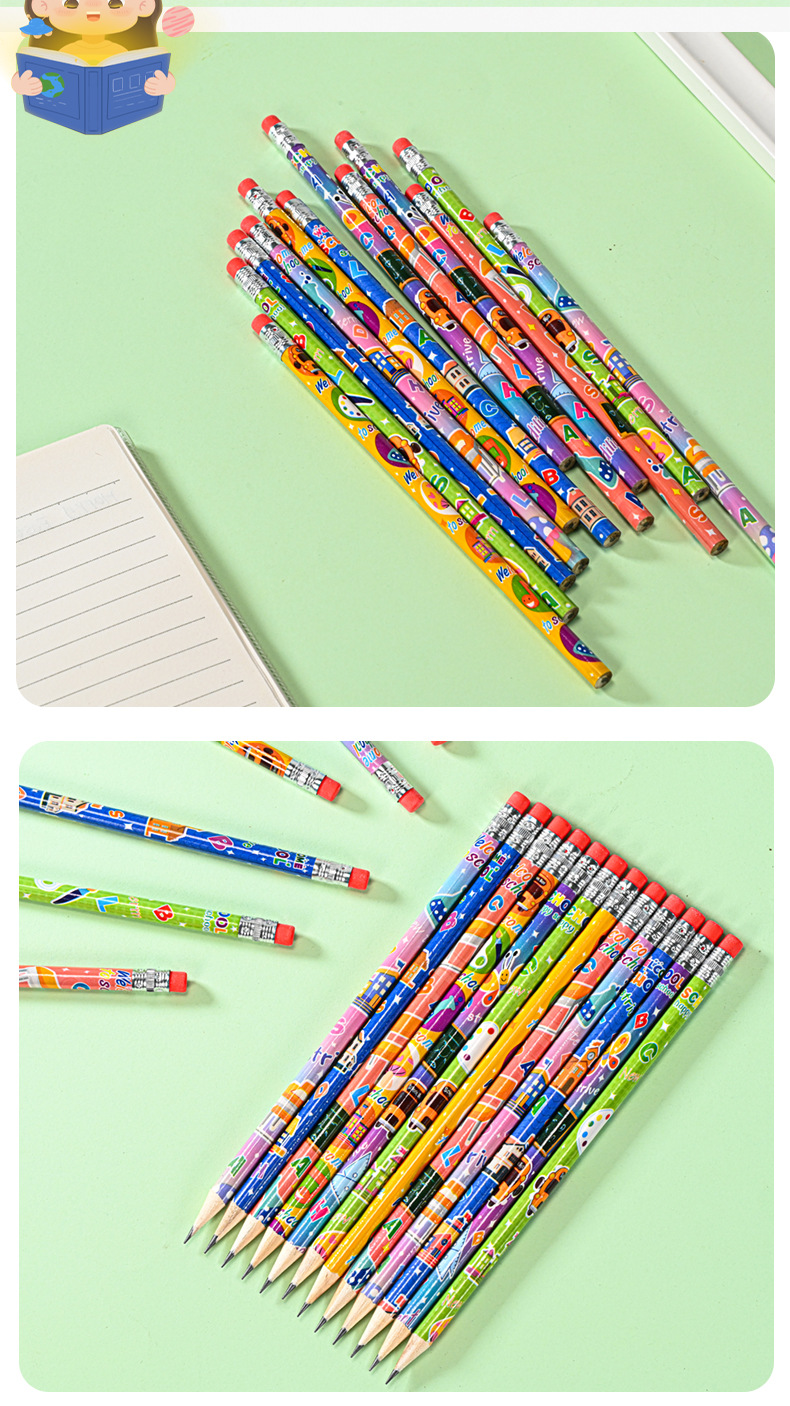 Pensil kartun HB tampilan tinggi 12 warna dapat dihapus seri tema kampus pensil kayu pabrik