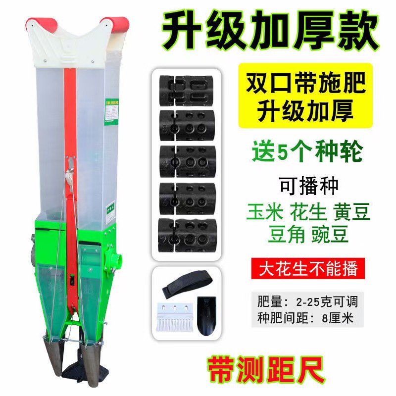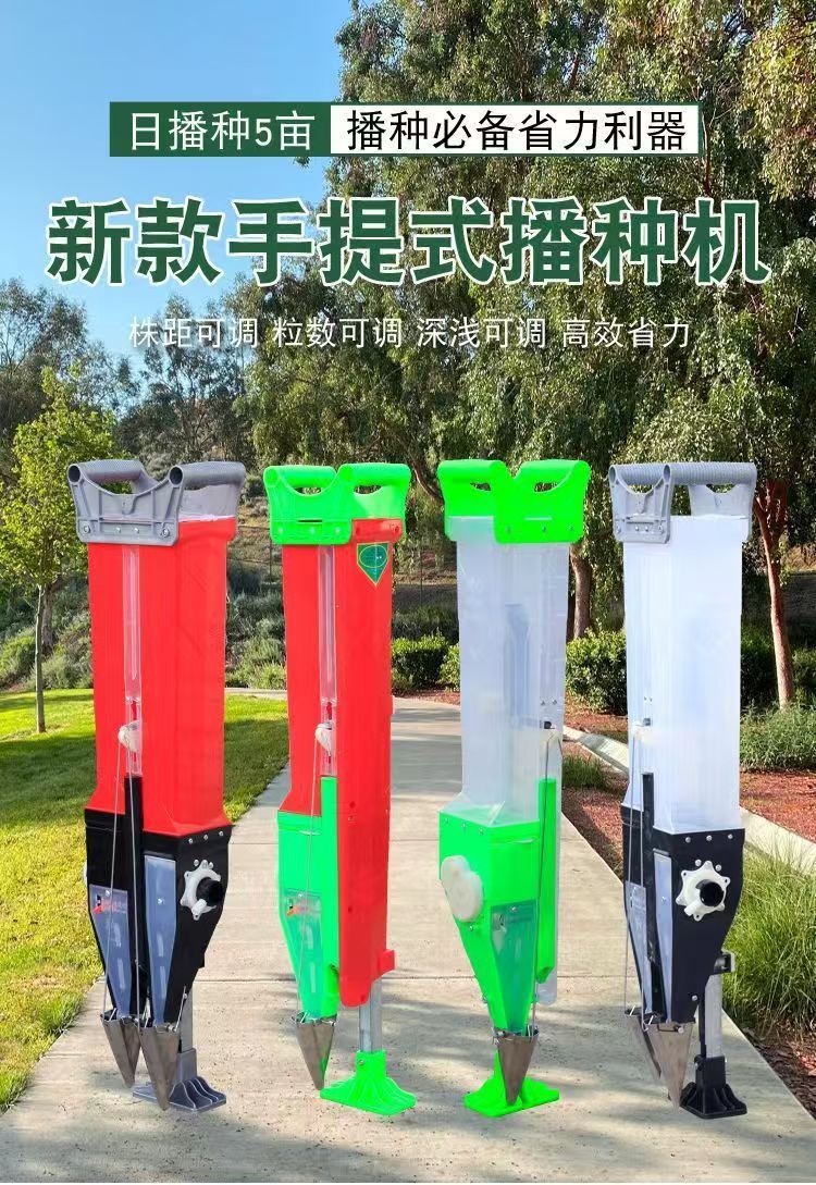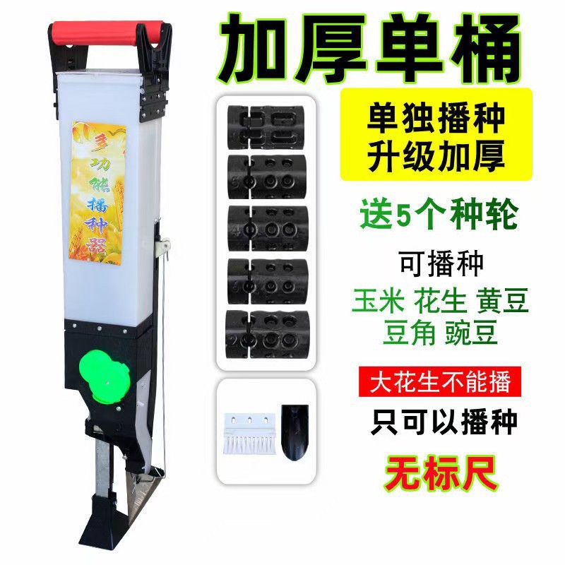 Mesin penabur biji pintar portabel yang dikendalikan suara untuk kedelai, kacang tanah, jagung, dan biji-bijian, dengan fungsi pemupukan dan penaburan terintegrasi.