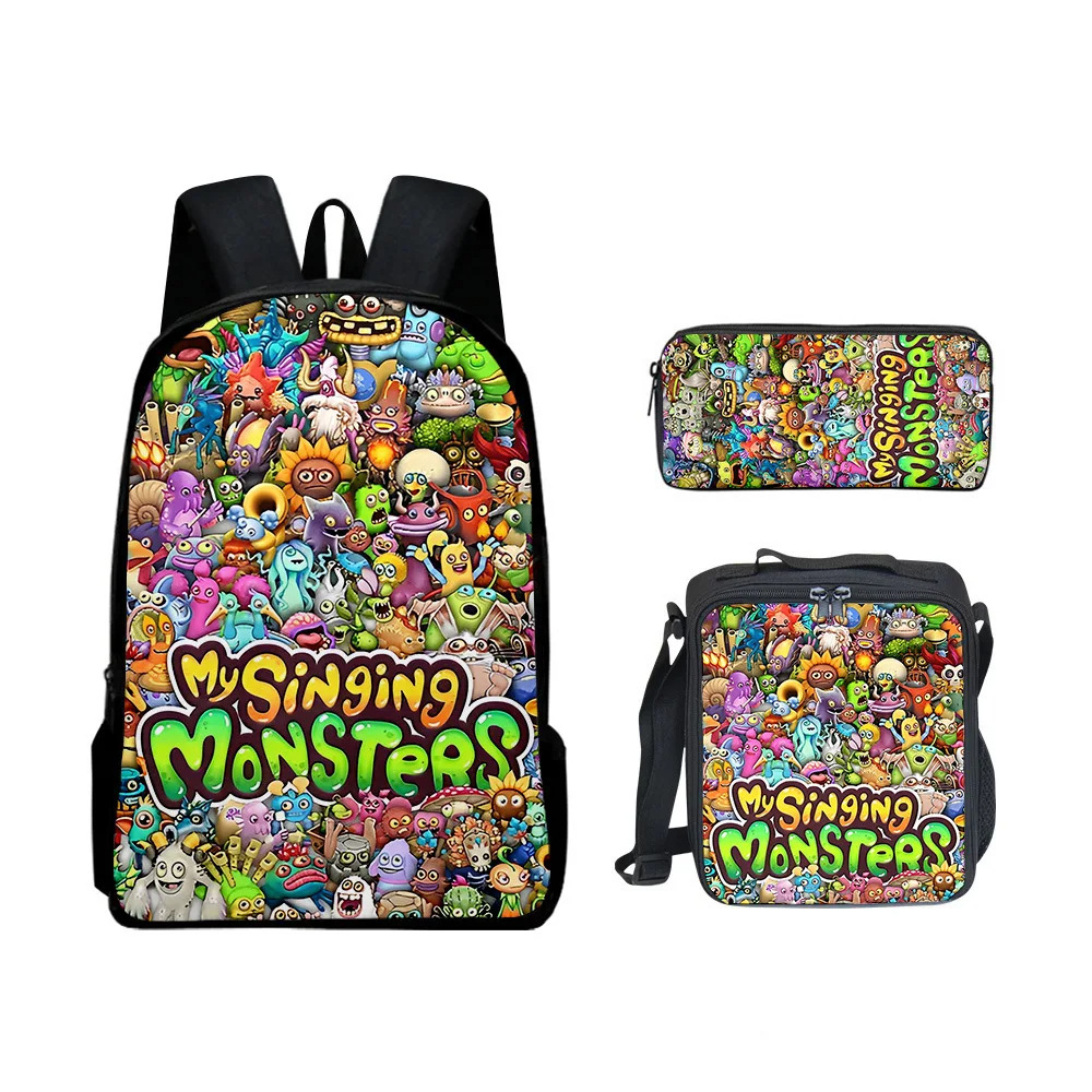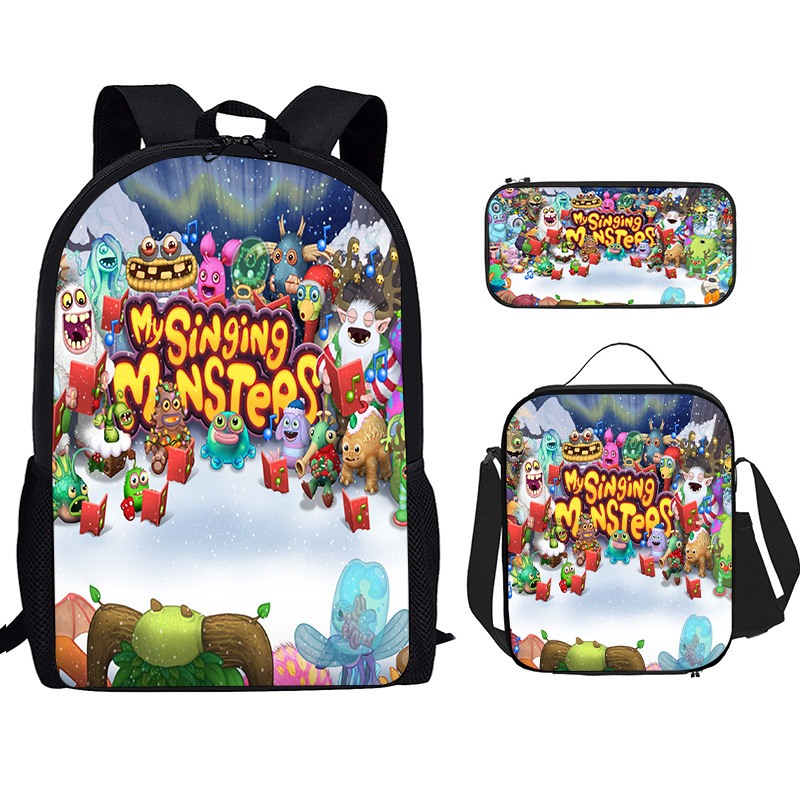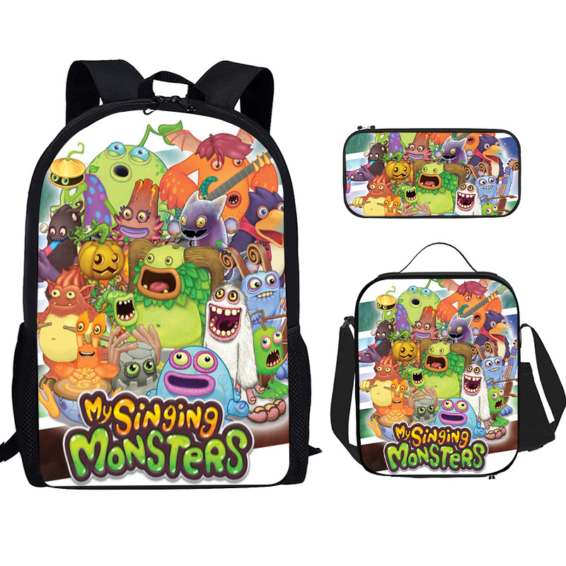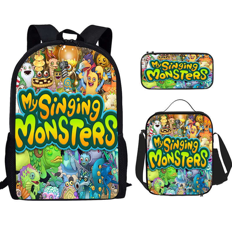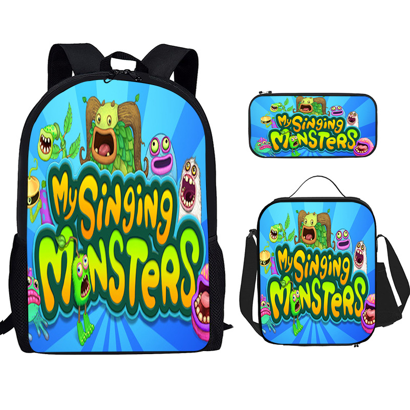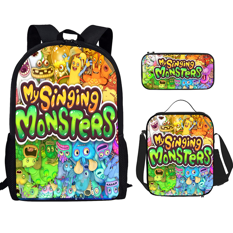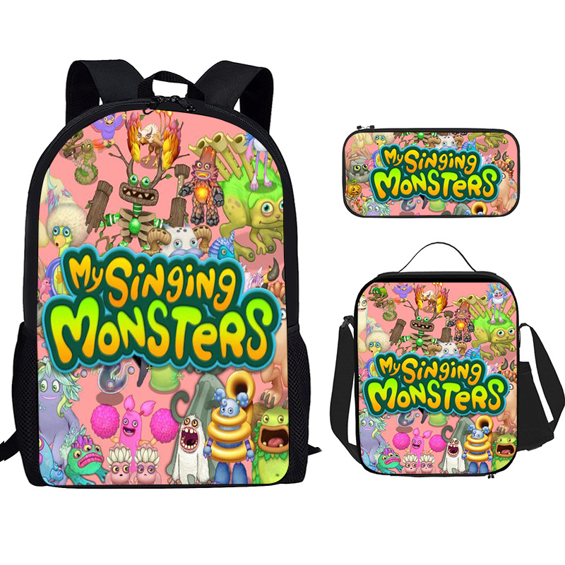 Tas Sekolah Siswa Sekolah Dasar Penyanyi Monster Spot Ransel Cetak Nilon Set Tiga Potong Ransel Sejuk Dropshipping Ringan