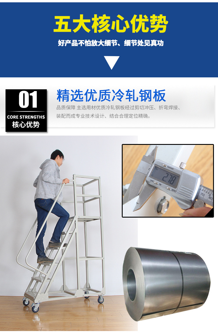 Tangga panjat baja canai dingin, tangga panjat mobile yang dapat dilepas dan disimpan, tangga panjat mobile untuk perawatan, tangga panjat platform, tangga penanganan barang.