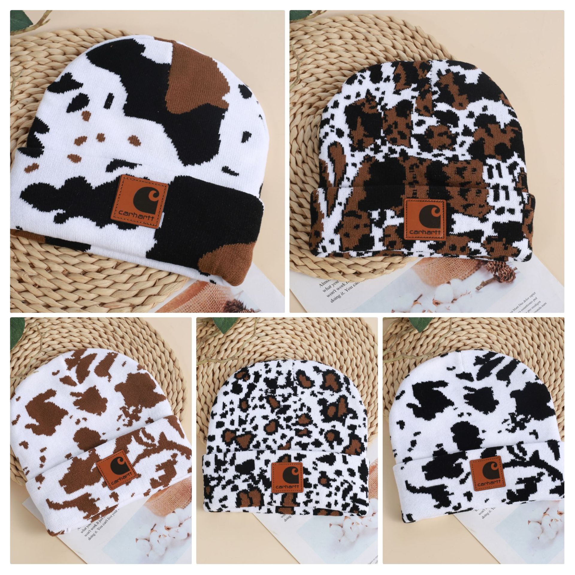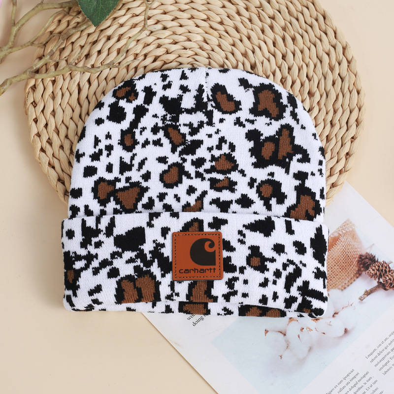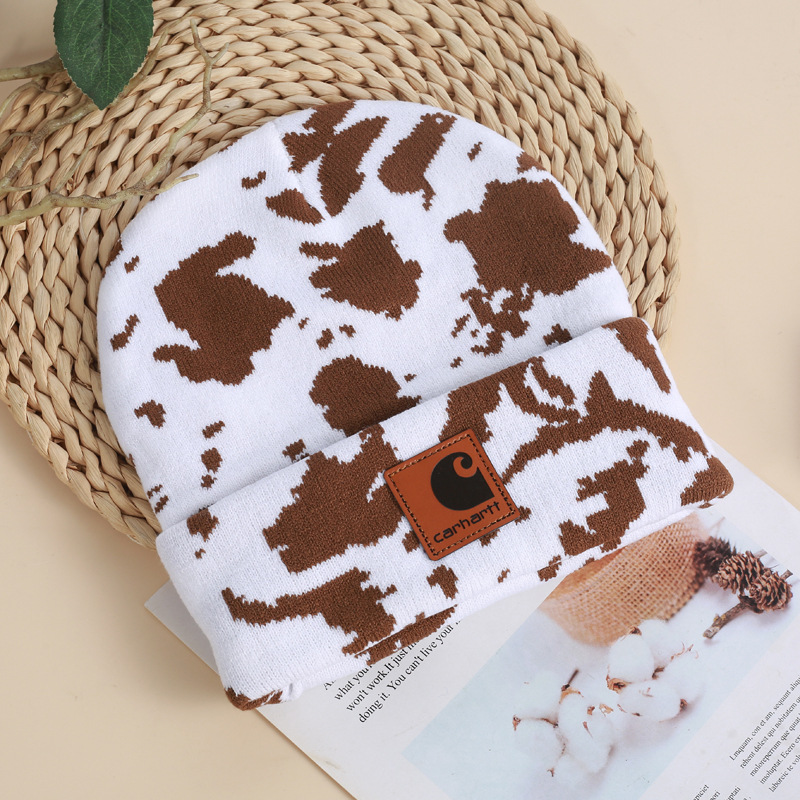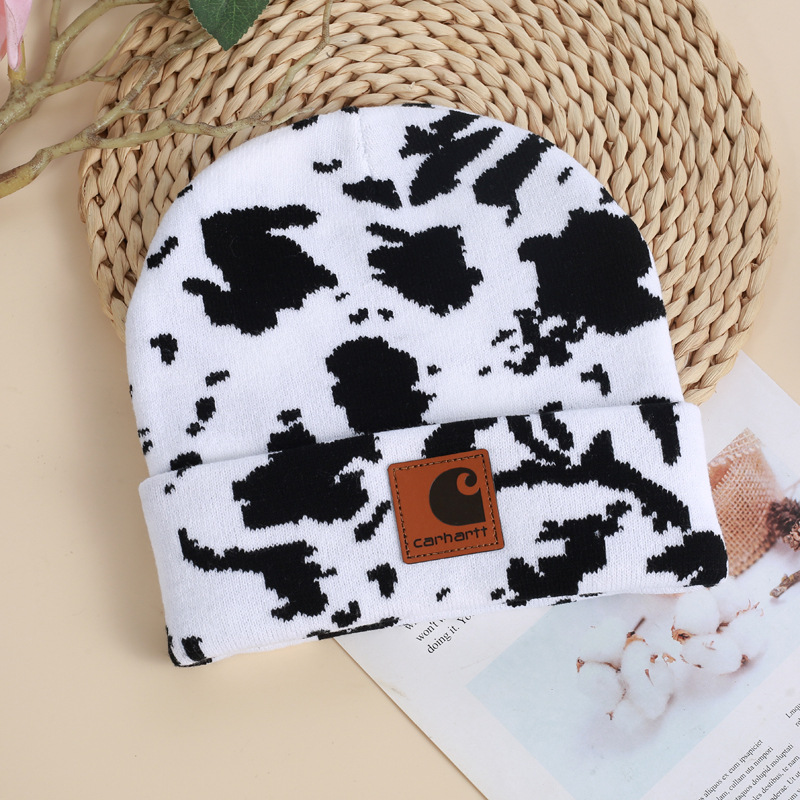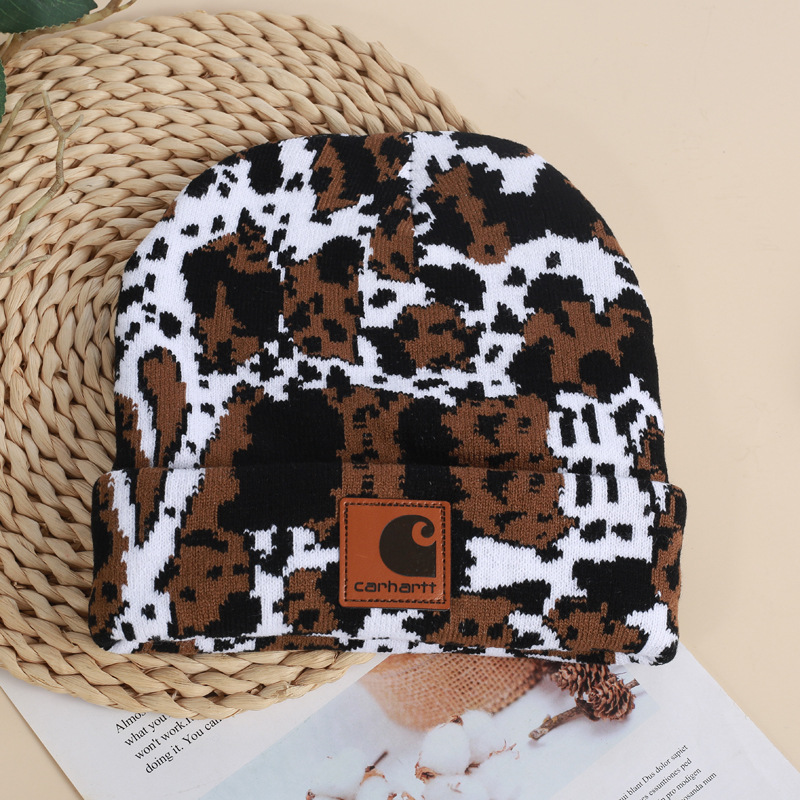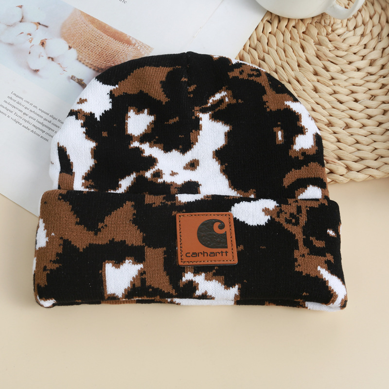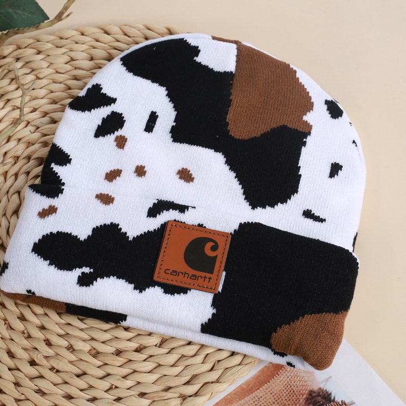 CARHARTT topi rajut sapi Jacquard, topi santai luar ruangan mode serbaguna Eropa dan Amerika penutup hangat pelindung telinga tahan angin