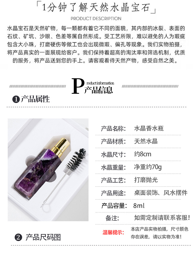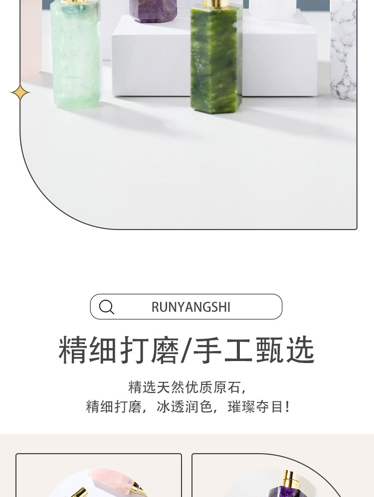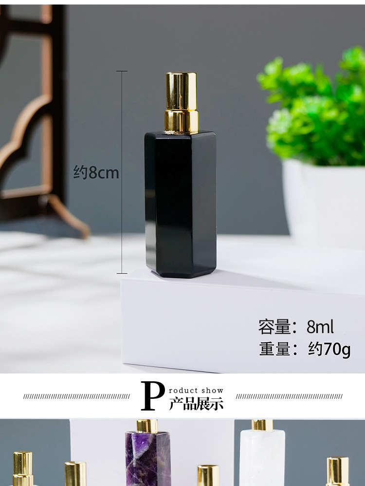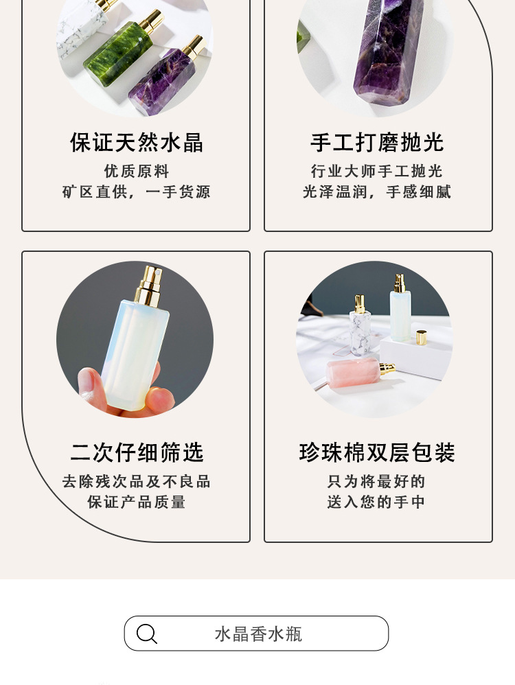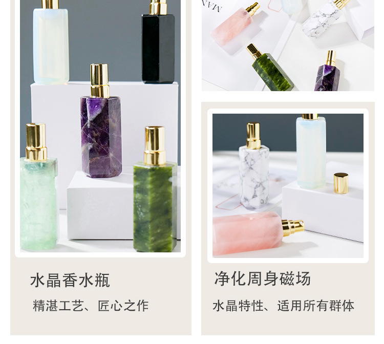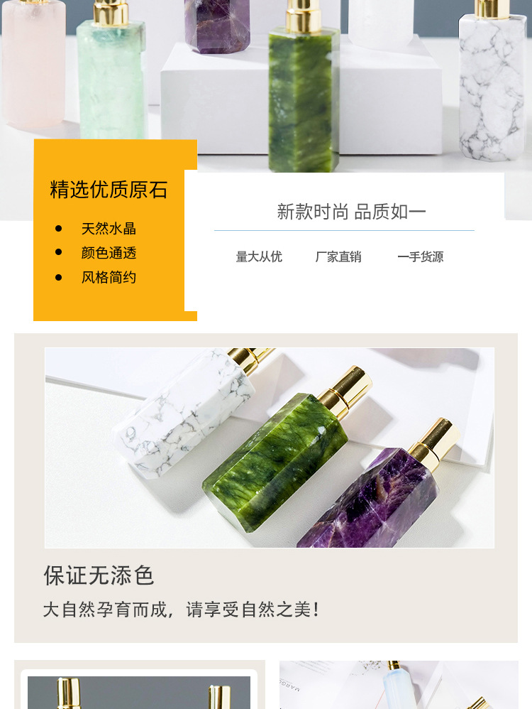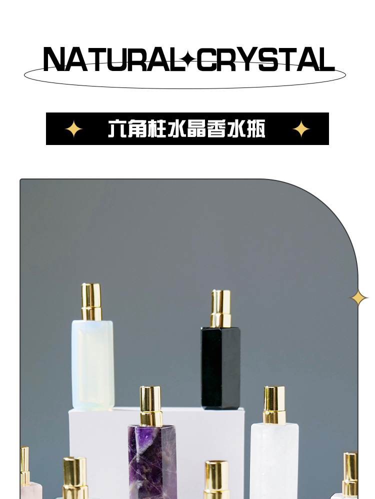 Botol parfum semprot botol minyak esensial kolom kristal heksagonal kristal putih ungu merah muda alami Dekorasi botol aromaterapi giok grosir