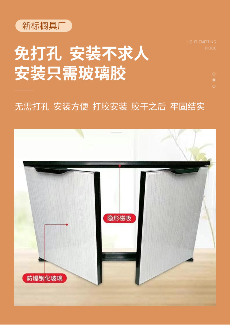 Bingkai luar berperekat tanpa pengeboran, pintu kabinet non-tempered, pintu baja kristal, pintu paduan aluminium, panel pintu dapur kaca, lemari dapur