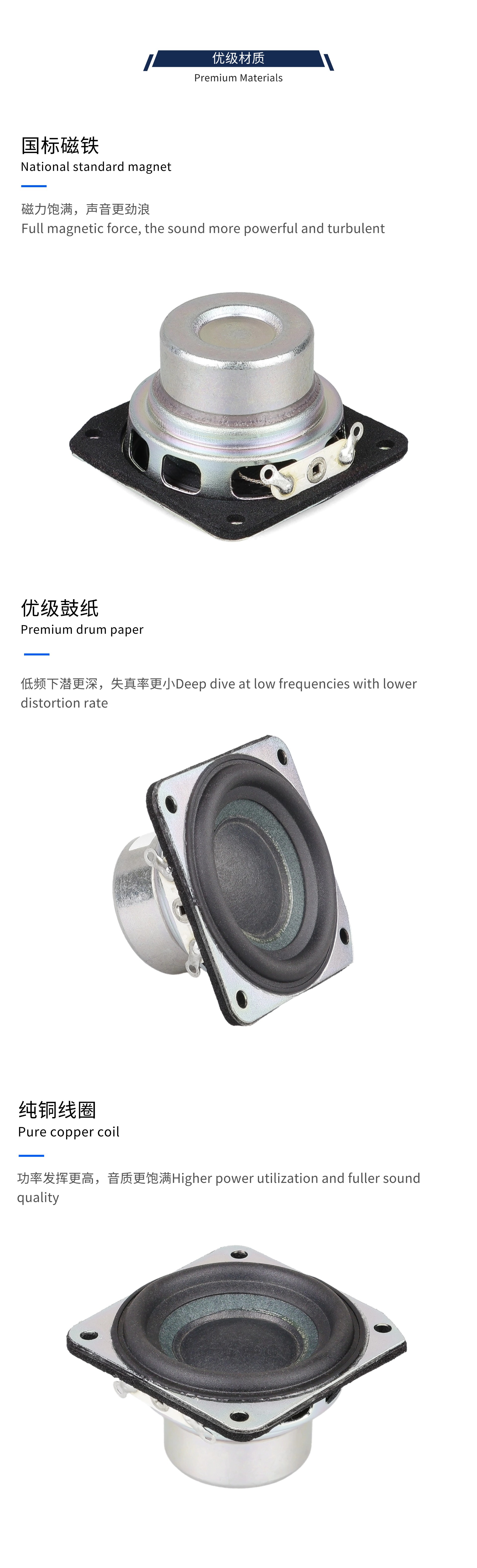 Speaker Jarak Penuh 40Mm 1.5 Inci 4 Ohm 5W Speaker Magnetik Neodymium Meriam Baja Kecil Stroke Panjang Tepi Karet 16-Core Magnetik Ganda