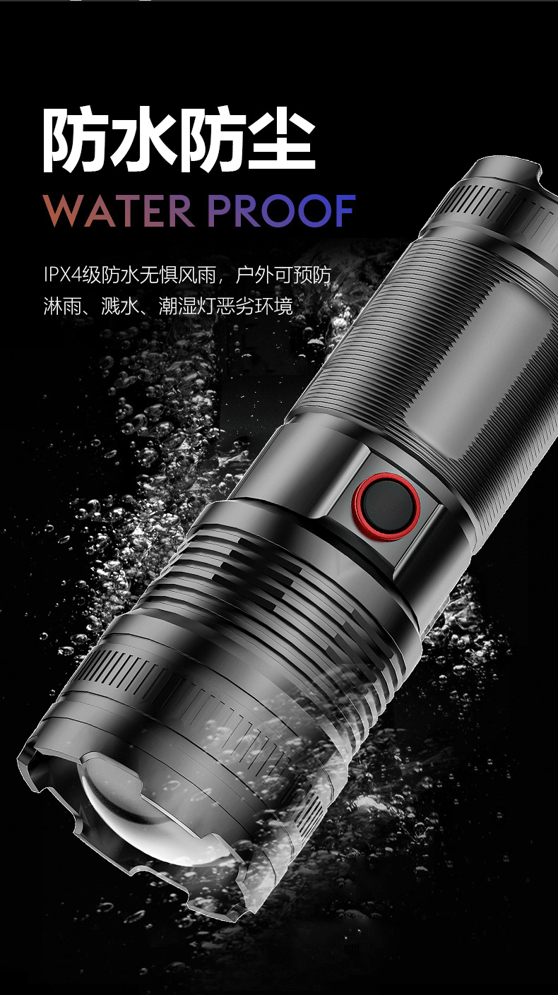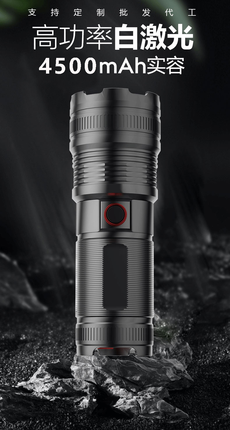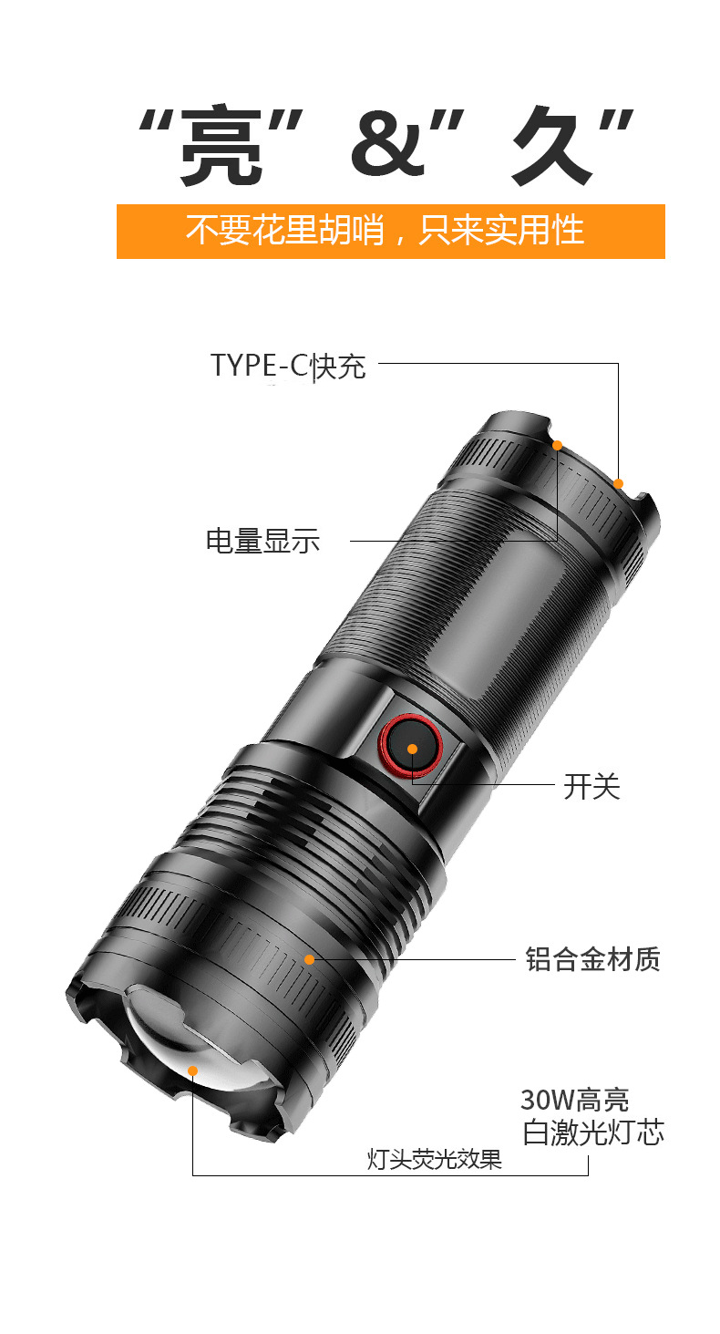 Senter laser putih baru dengan zoom teleskopik, pengisian daya TYPE-C multifungsi, cahaya kuat untuk luar ruangan, baterai tahan lama.