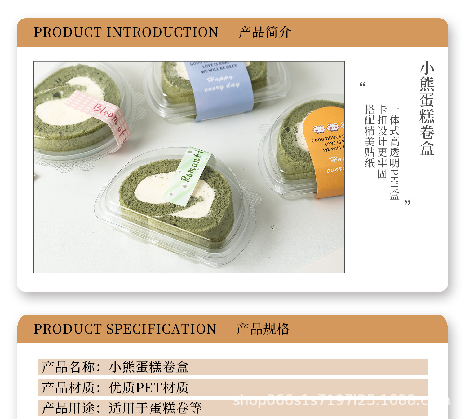 Kotak gulung kue gaya Jepang beruang lucu kotak kemasan tunggal blok kue makanan penutup barat portabel kotak gulung Swiss transparan