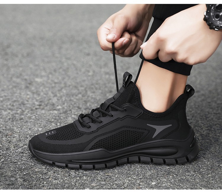 Cross-Border sepatu jala bernapas pria, sneaker olahraga lari kasual jala, perlindungan tenaga kerja hitam musim panas