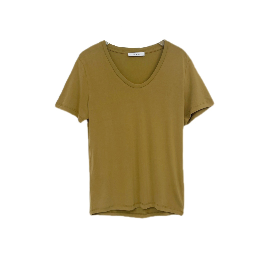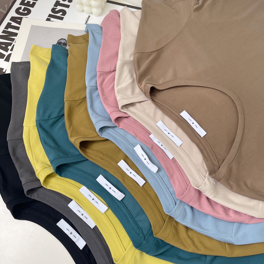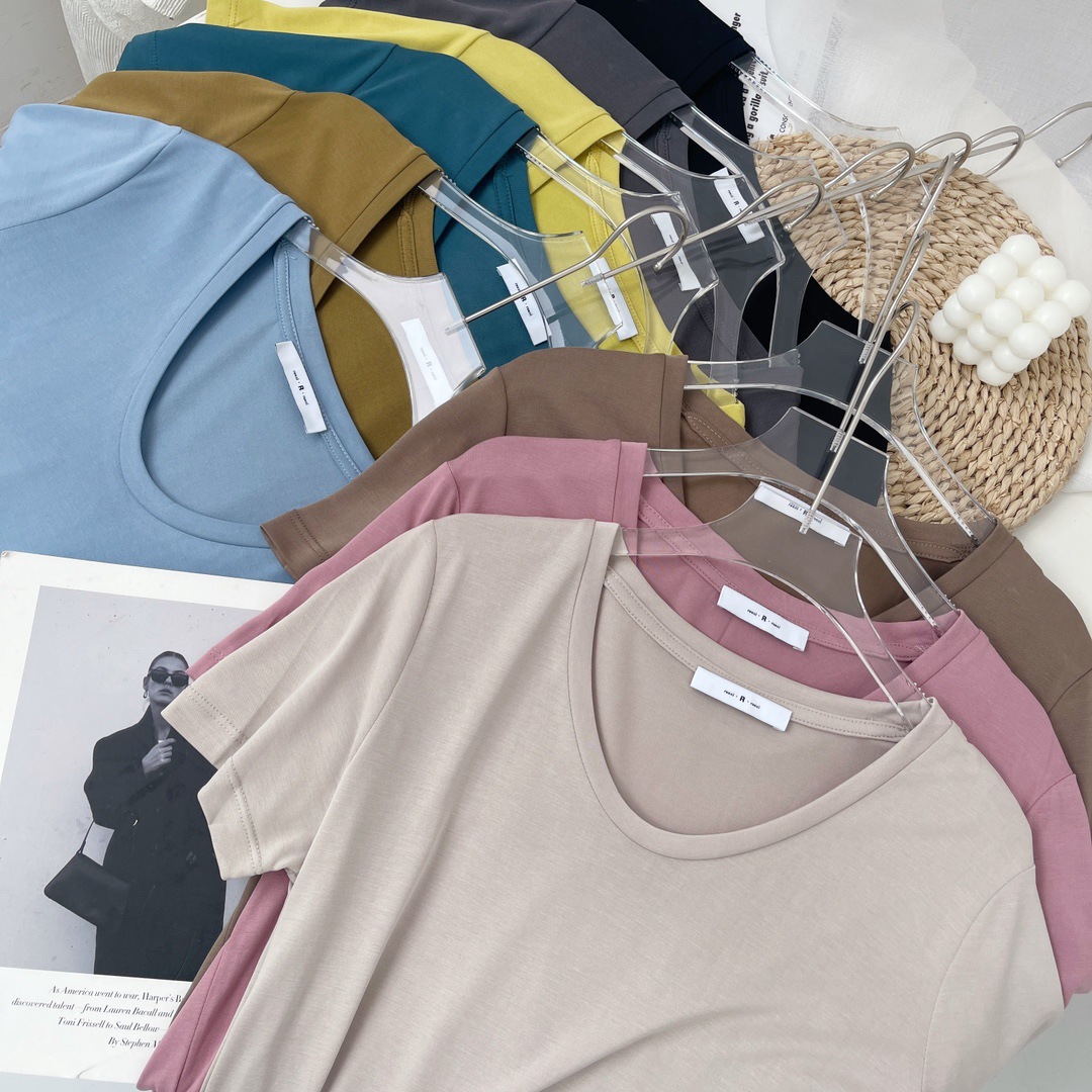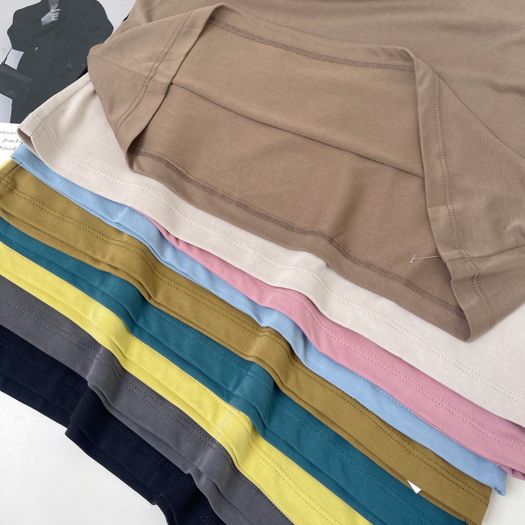Kaus lengan pendek leher V W00579, kaus dasar tipis slim-fit musim panas 2023 dengan warna solid, atasan pelangsing