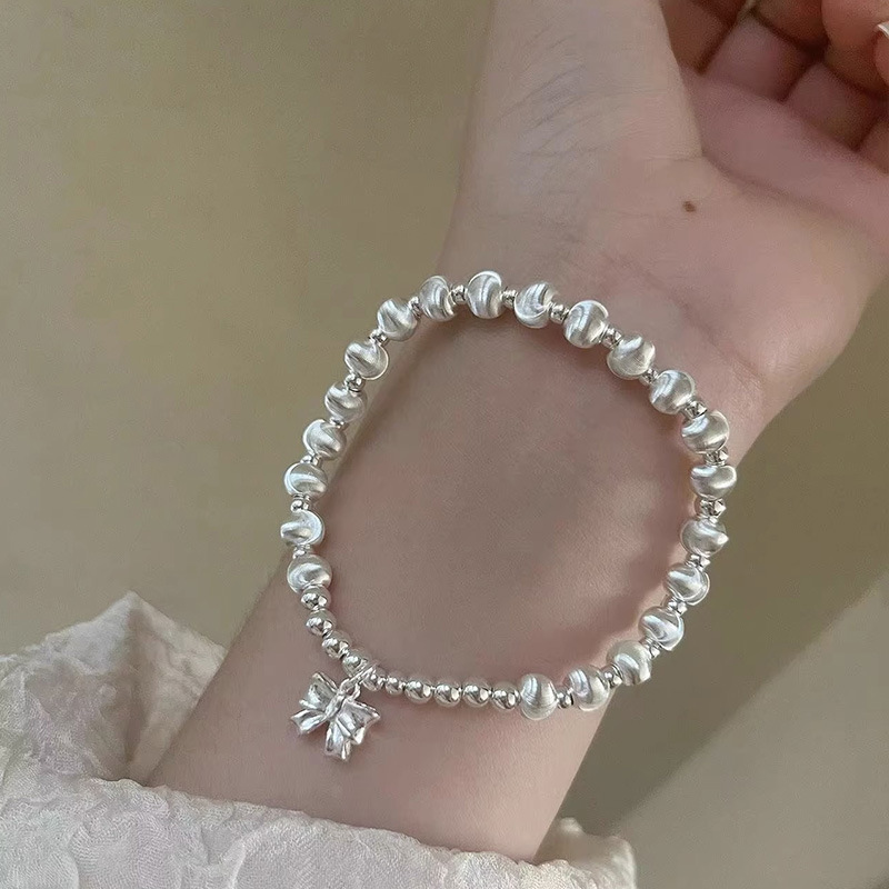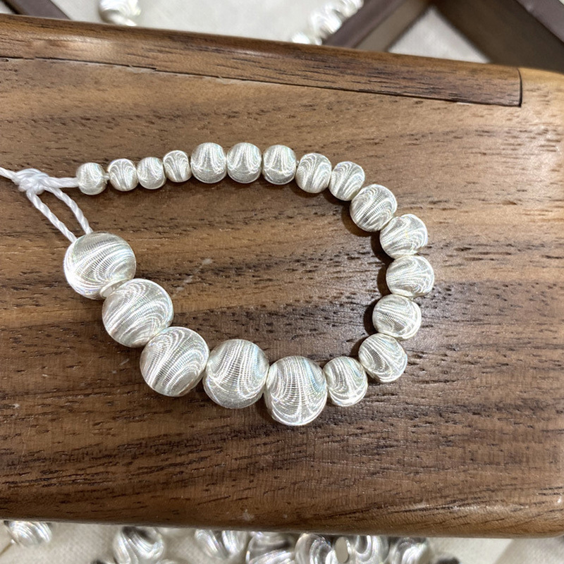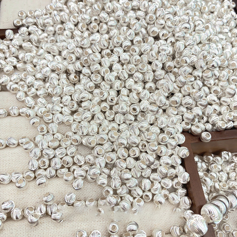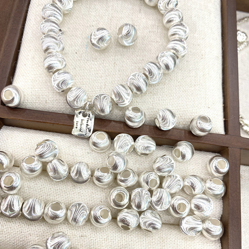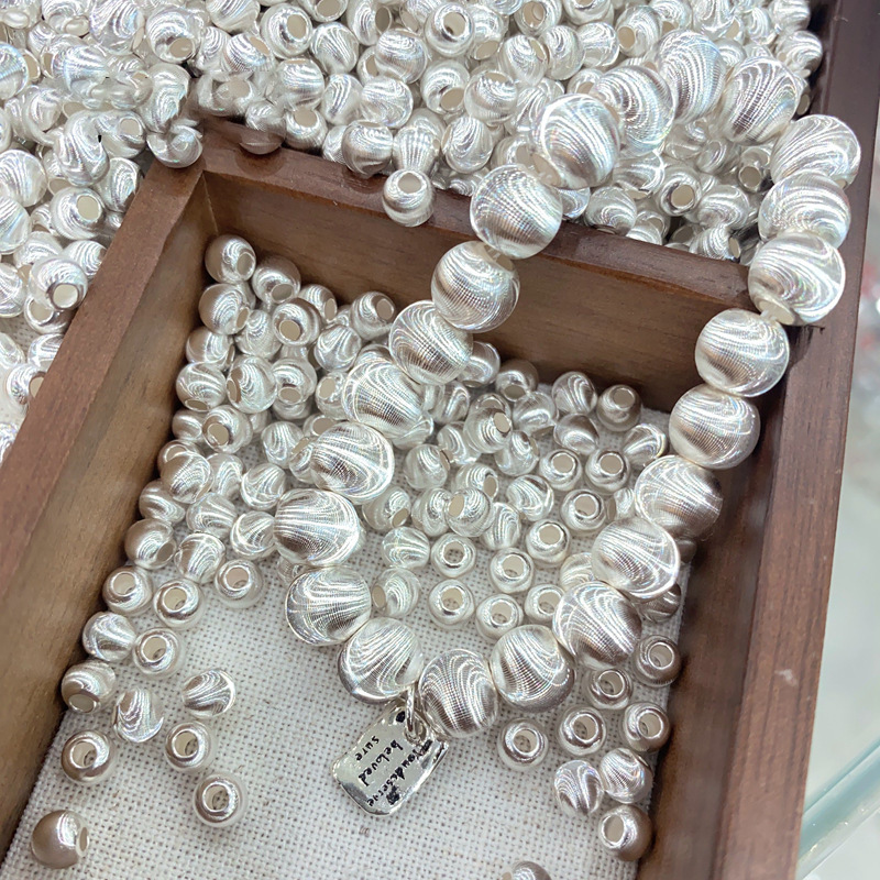 S925 perak sterling brushed mata kucing manik-manik diy gelang kalung anyaman gelang manik-manik longgar besar lubang kecil manik beruntung