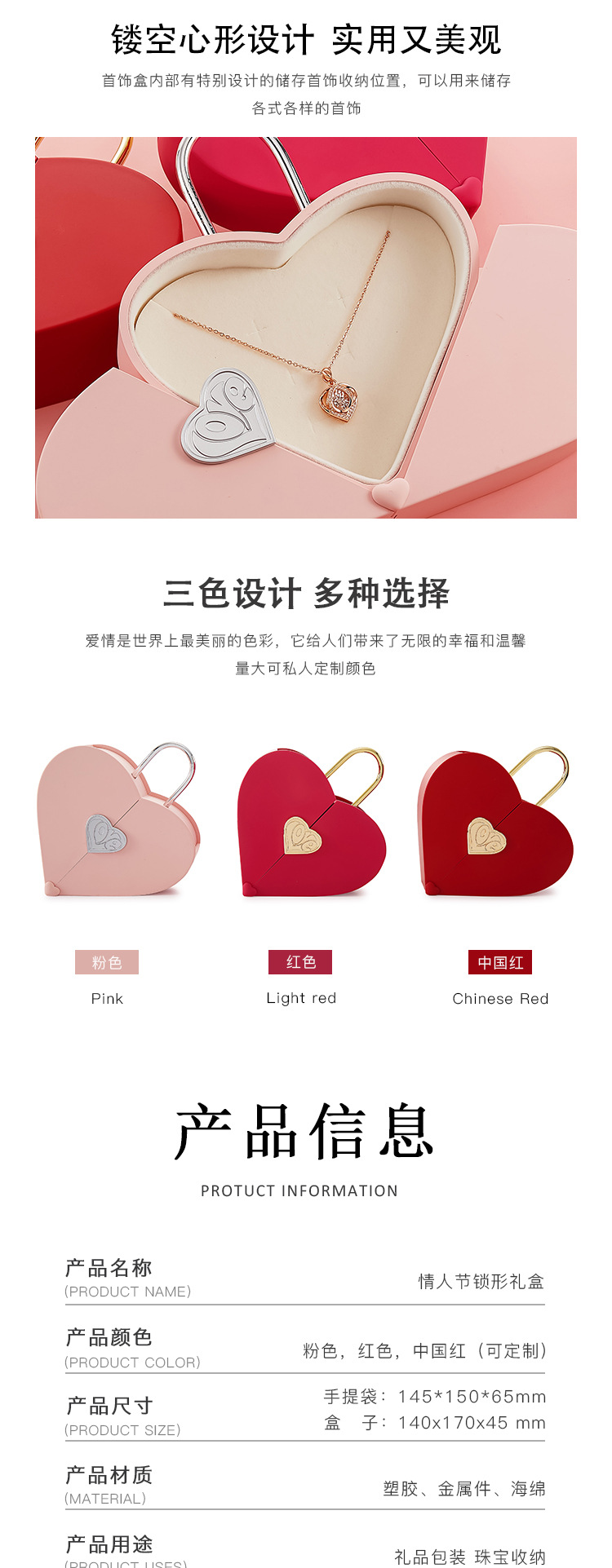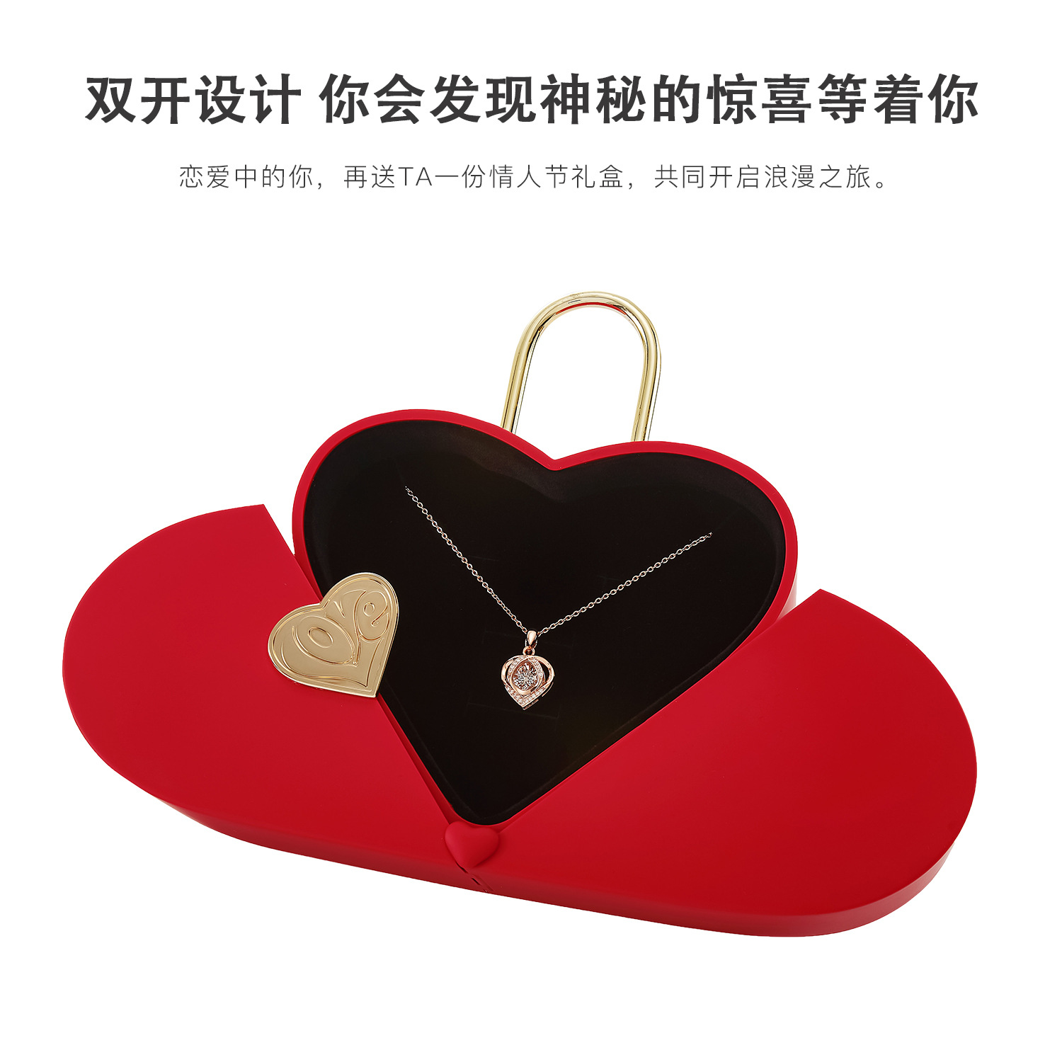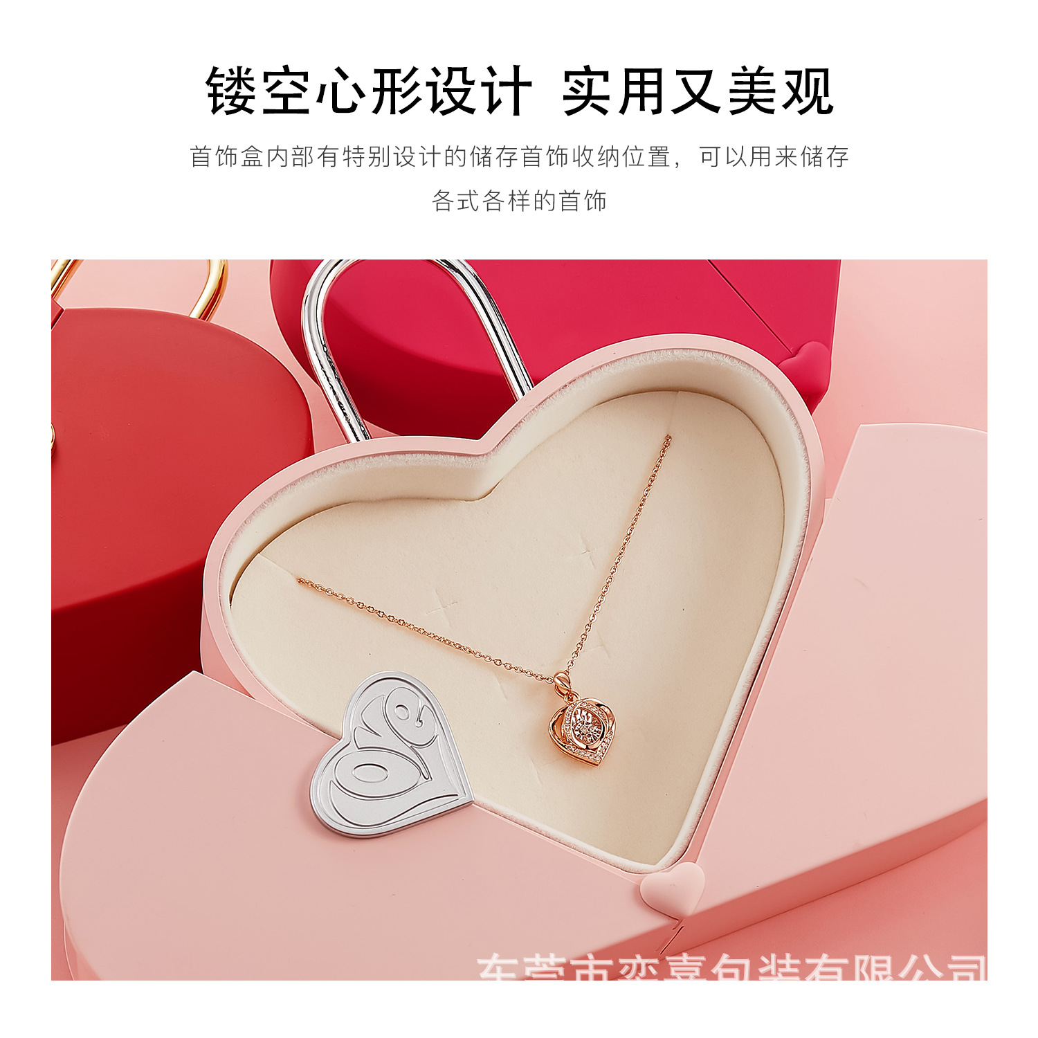 Kotak perhiasan portabel kotak perhiasan ganda berbentuk hati Hari Valentine kreatif baru pabrik kotak kalung kunci konsentris kotak perhiasan