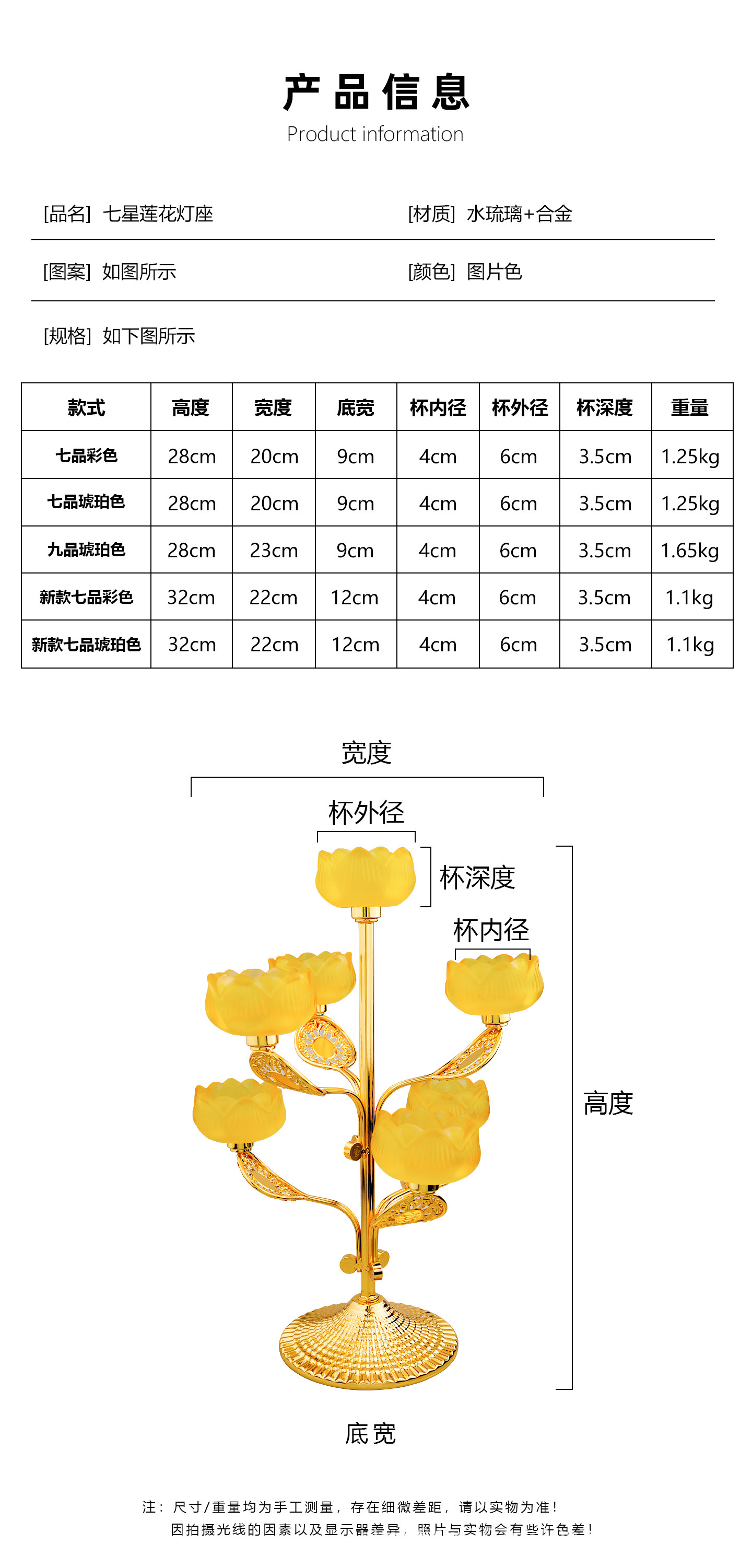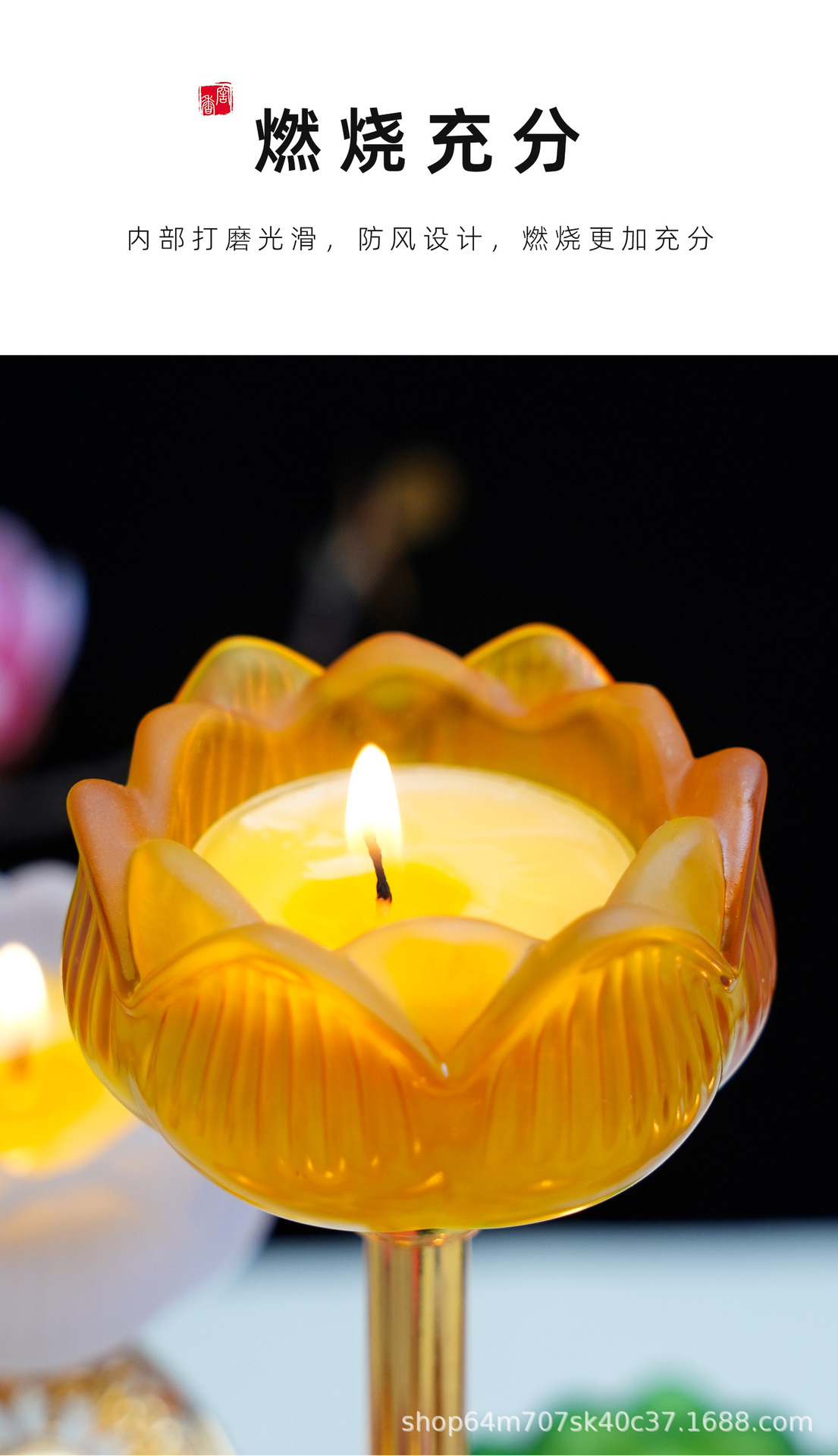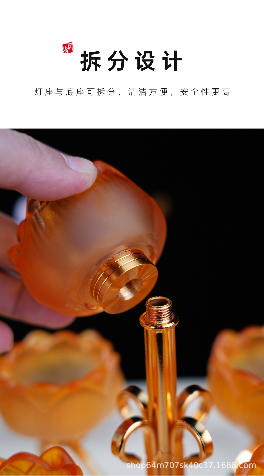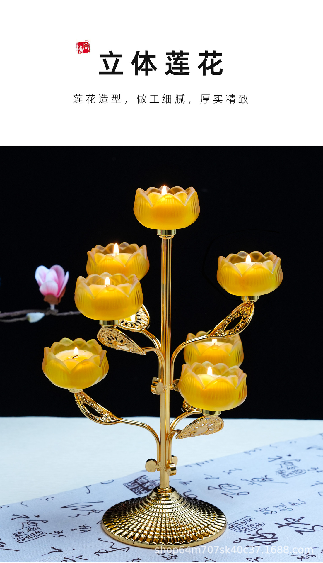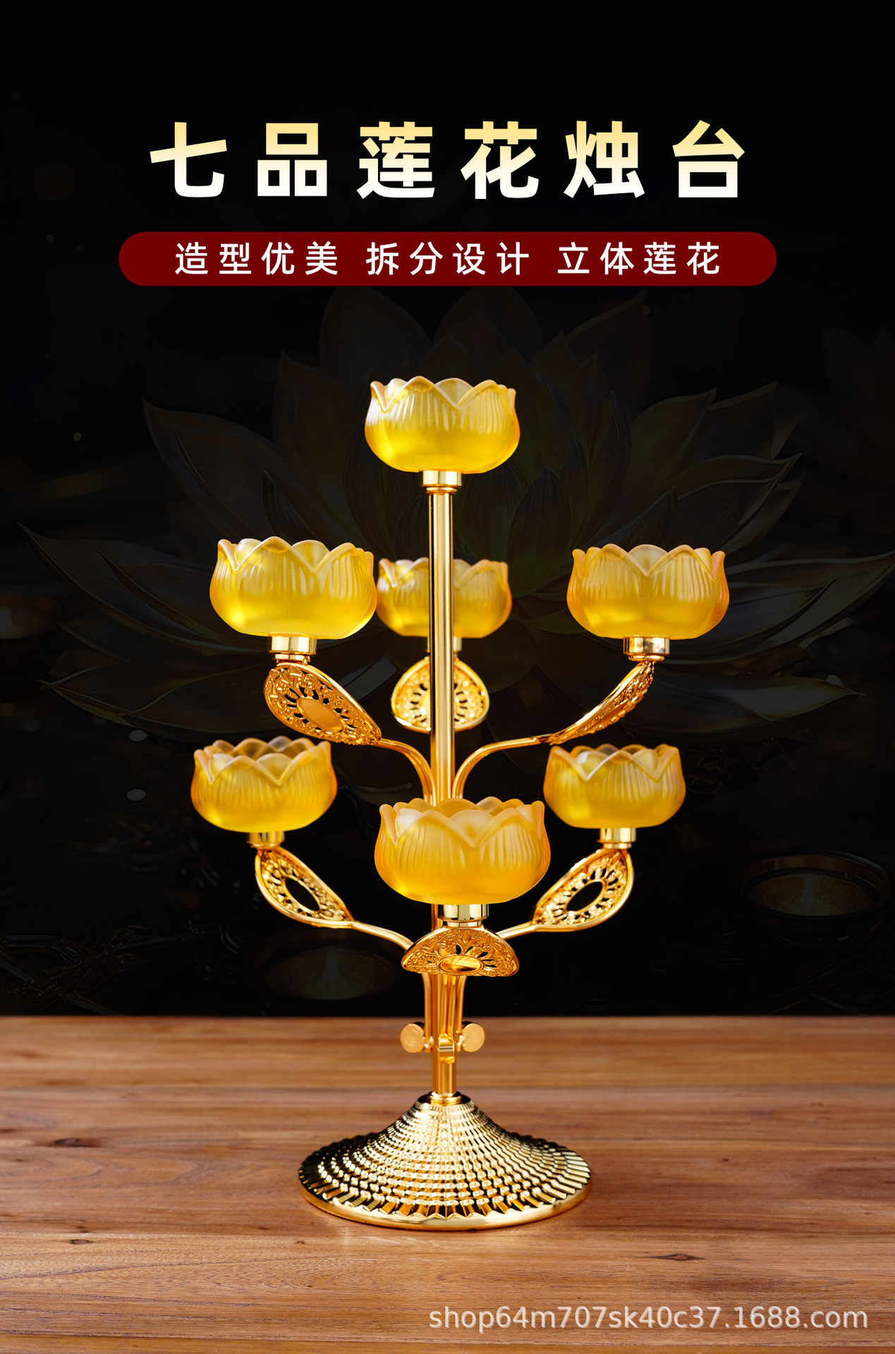 Tujuh Bintang tempat lilin kaca rumah tangga, dudukan lampu lotus dudukan lilin Buddha depan sembilan produk warna kuning