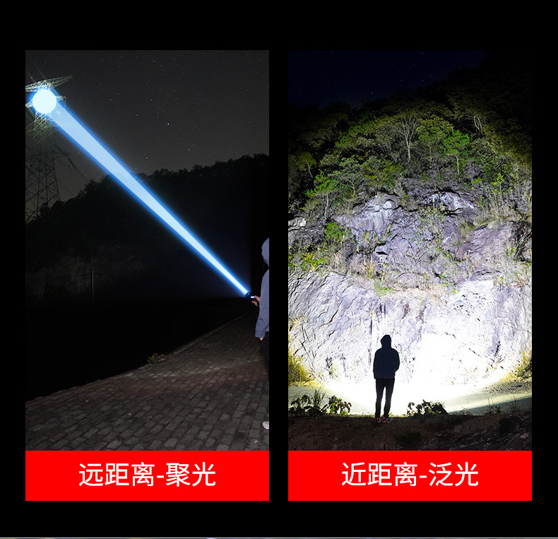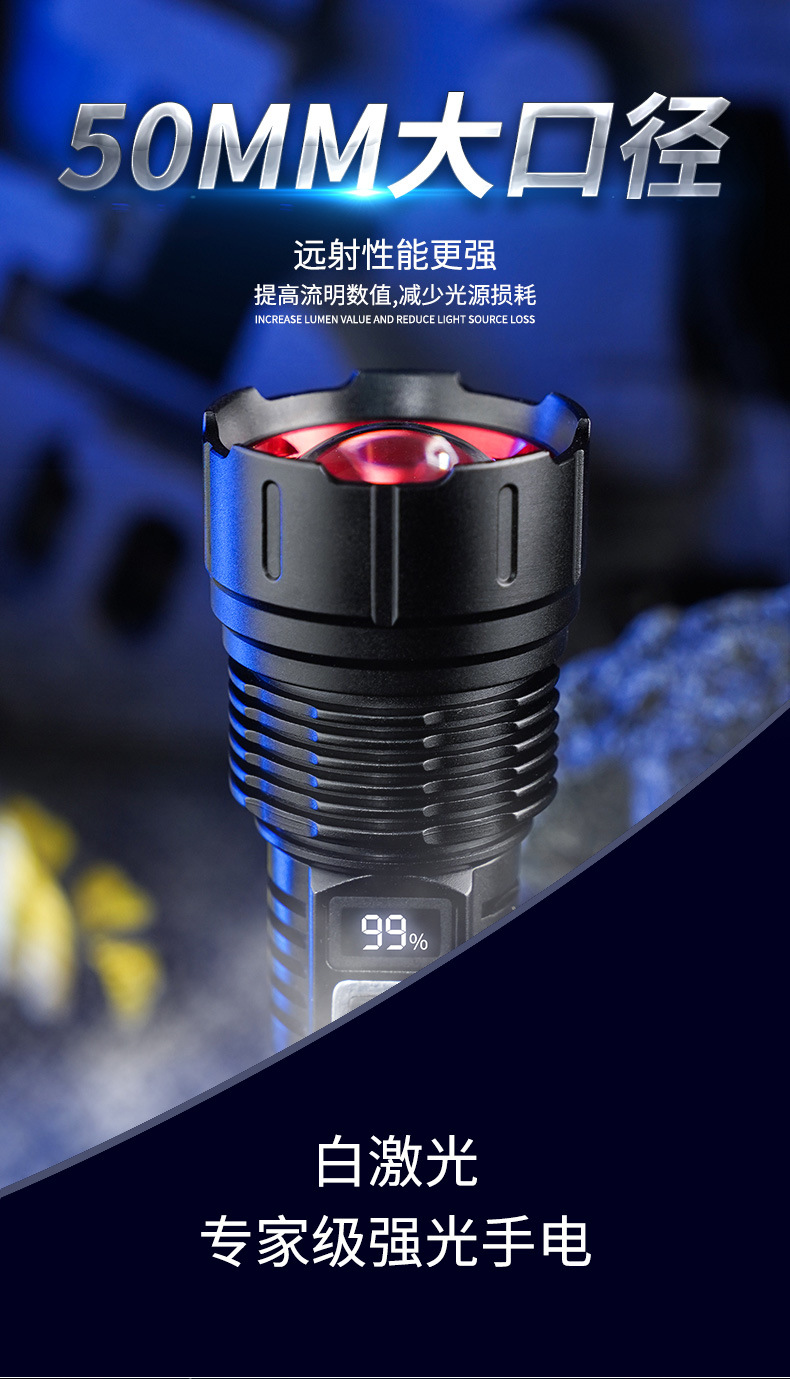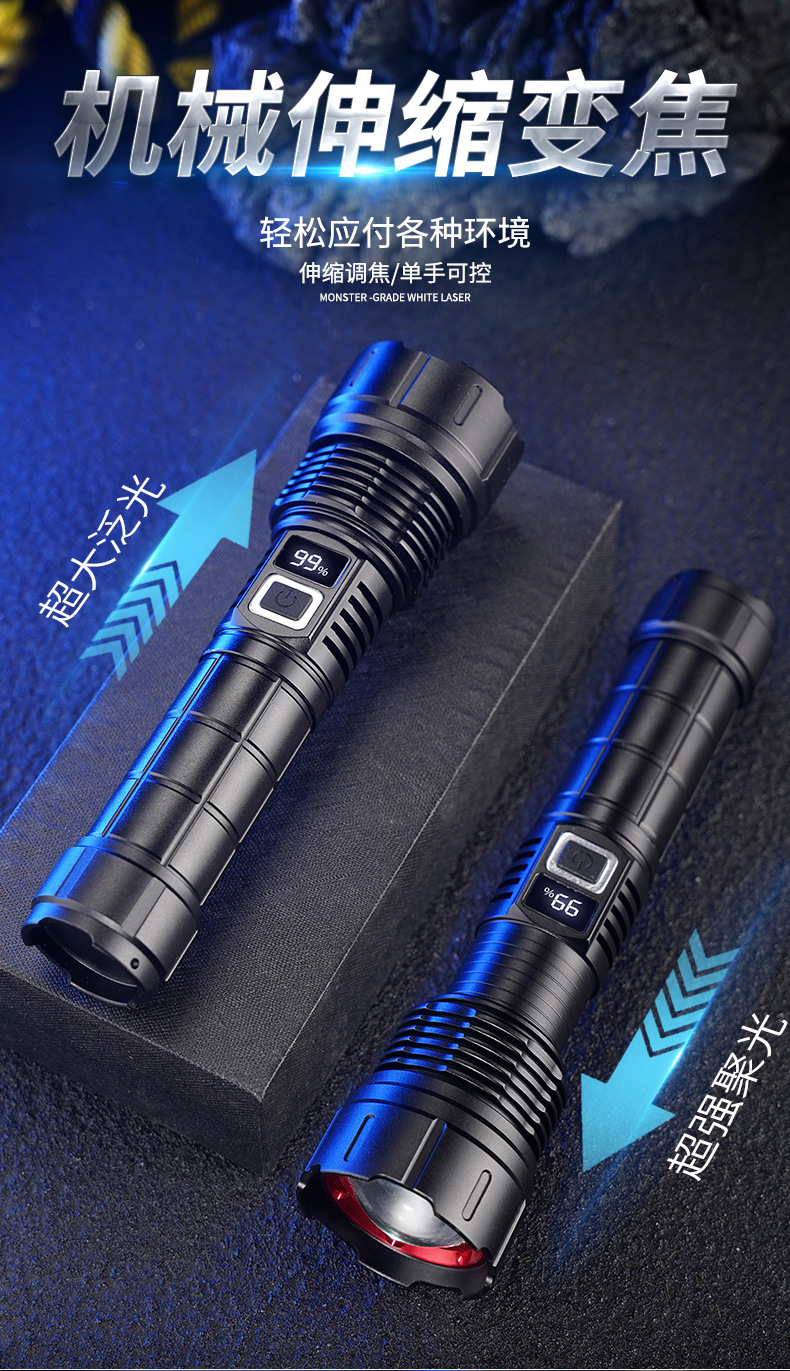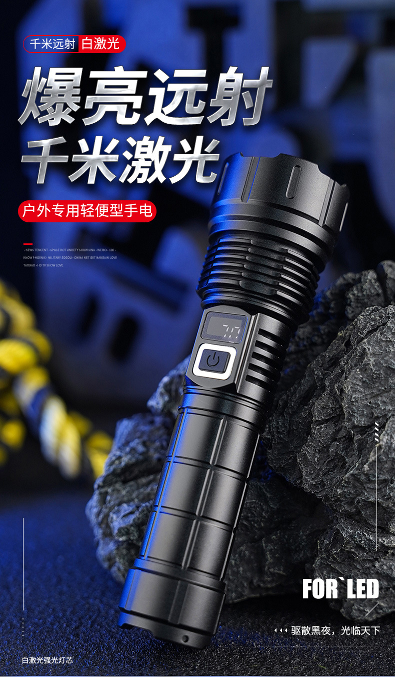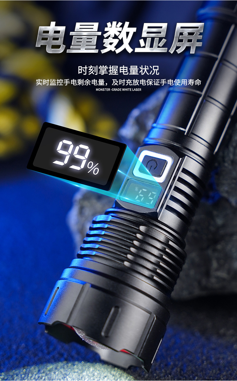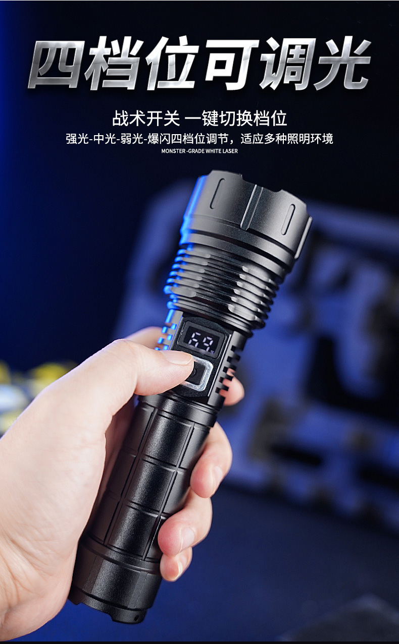 Senter LED kuat lintas batas, lampu senter multifungsi tampilan Digital dapat diisi ulang cahaya kuat perbesaran jarak jauh