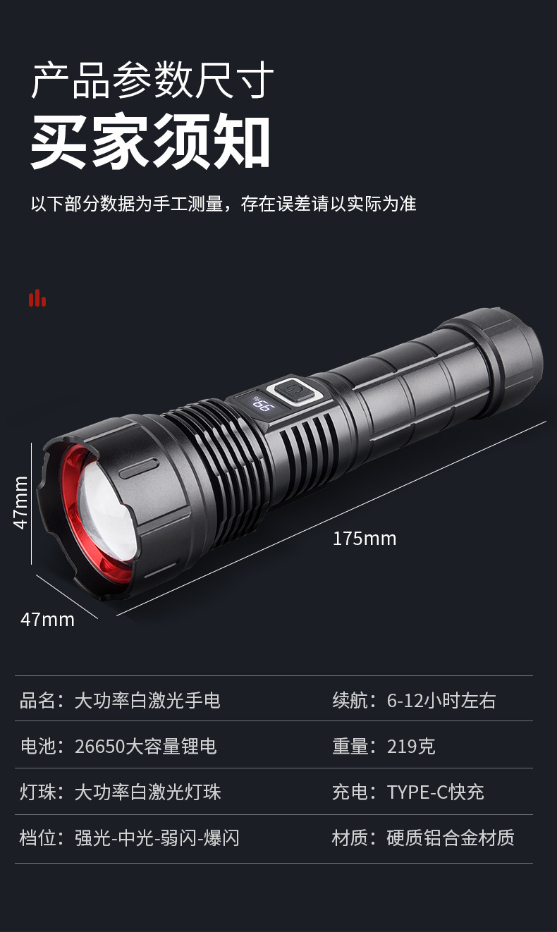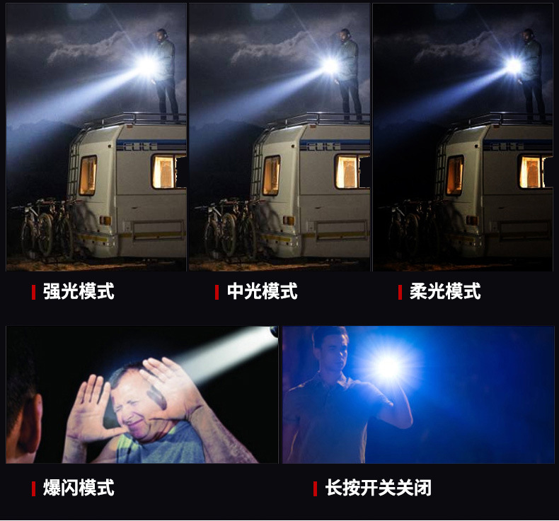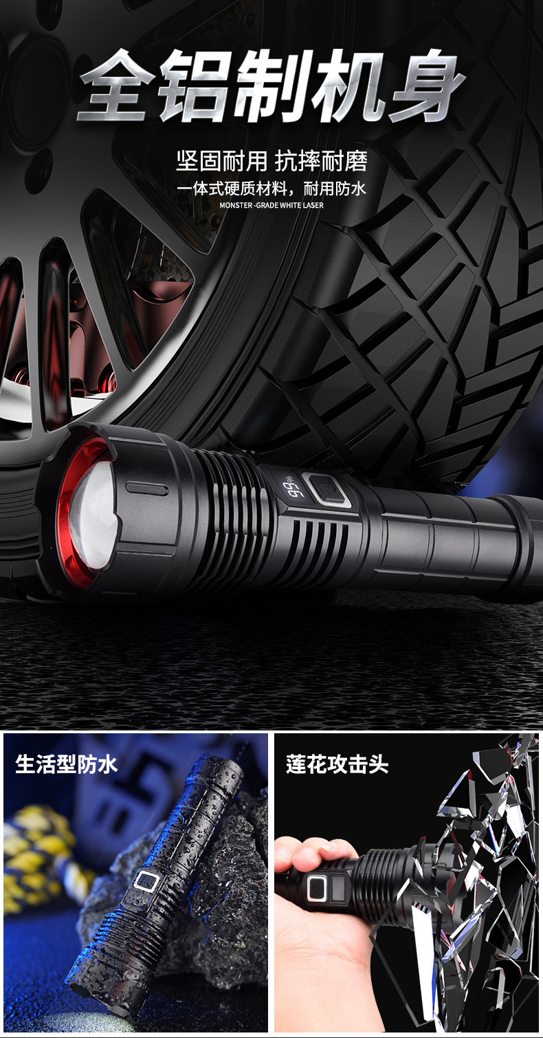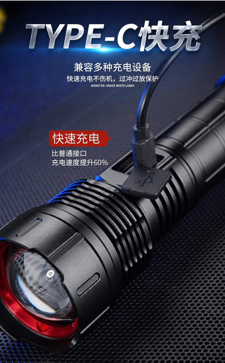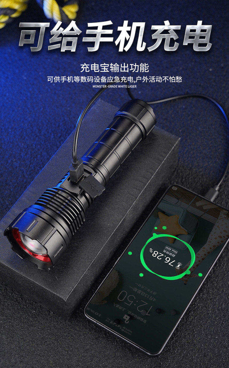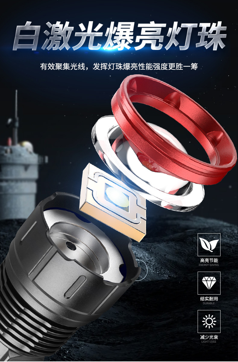 Senter LED kuat lintas batas, lampu senter multifungsi tampilan Digital dapat diisi ulang cahaya kuat perbesaran jarak jauh